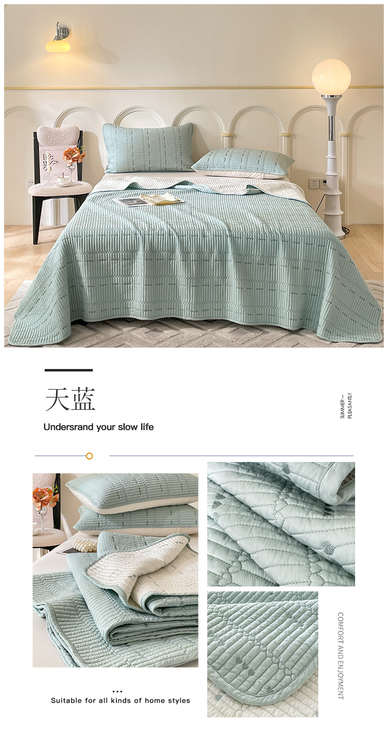 (总)上喜 2025新款全棉砂洗床盖新升级第五代,白色,湖蓝,奶油米,深灰,深咖