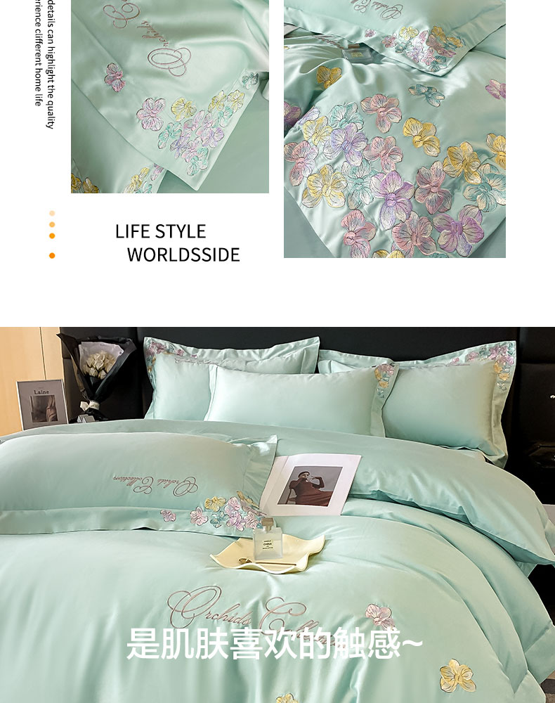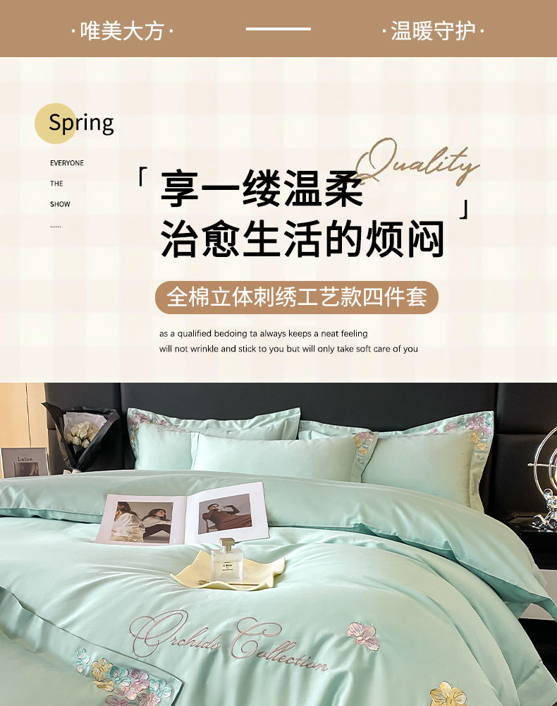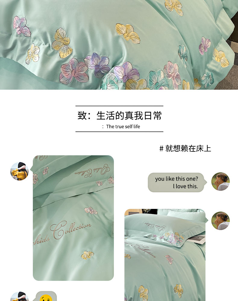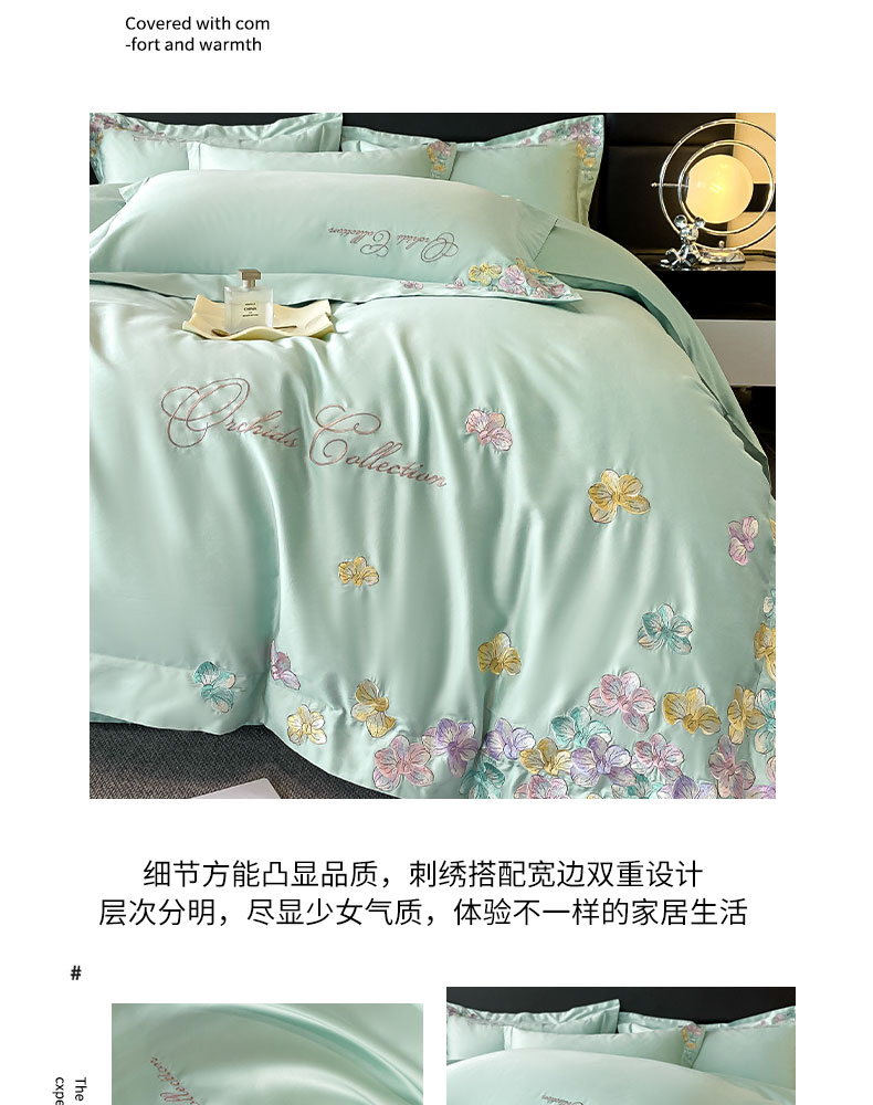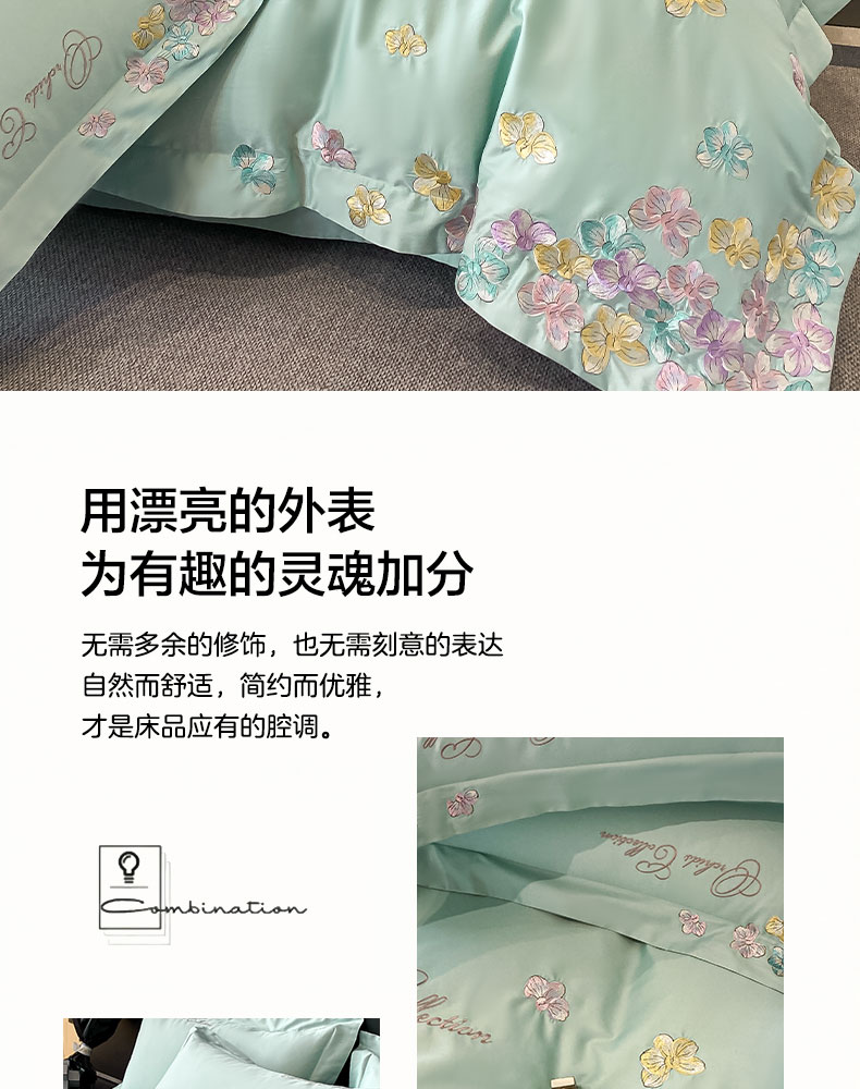 商品名称:丞音家纺 A类100全棉刺绣长绒棉花卉绣花纯棉四件套 蝶恋花-嫩芽绿