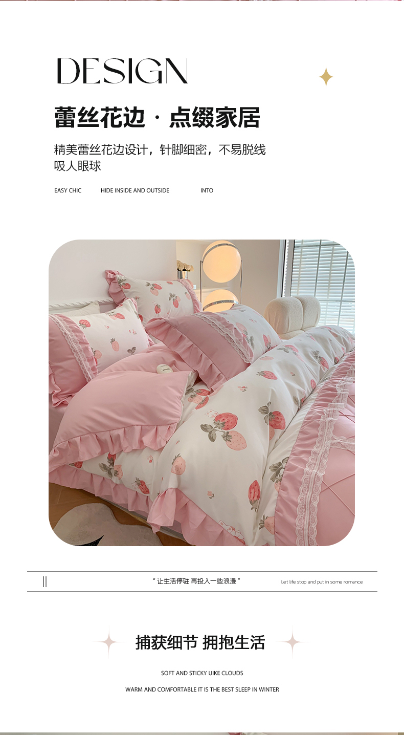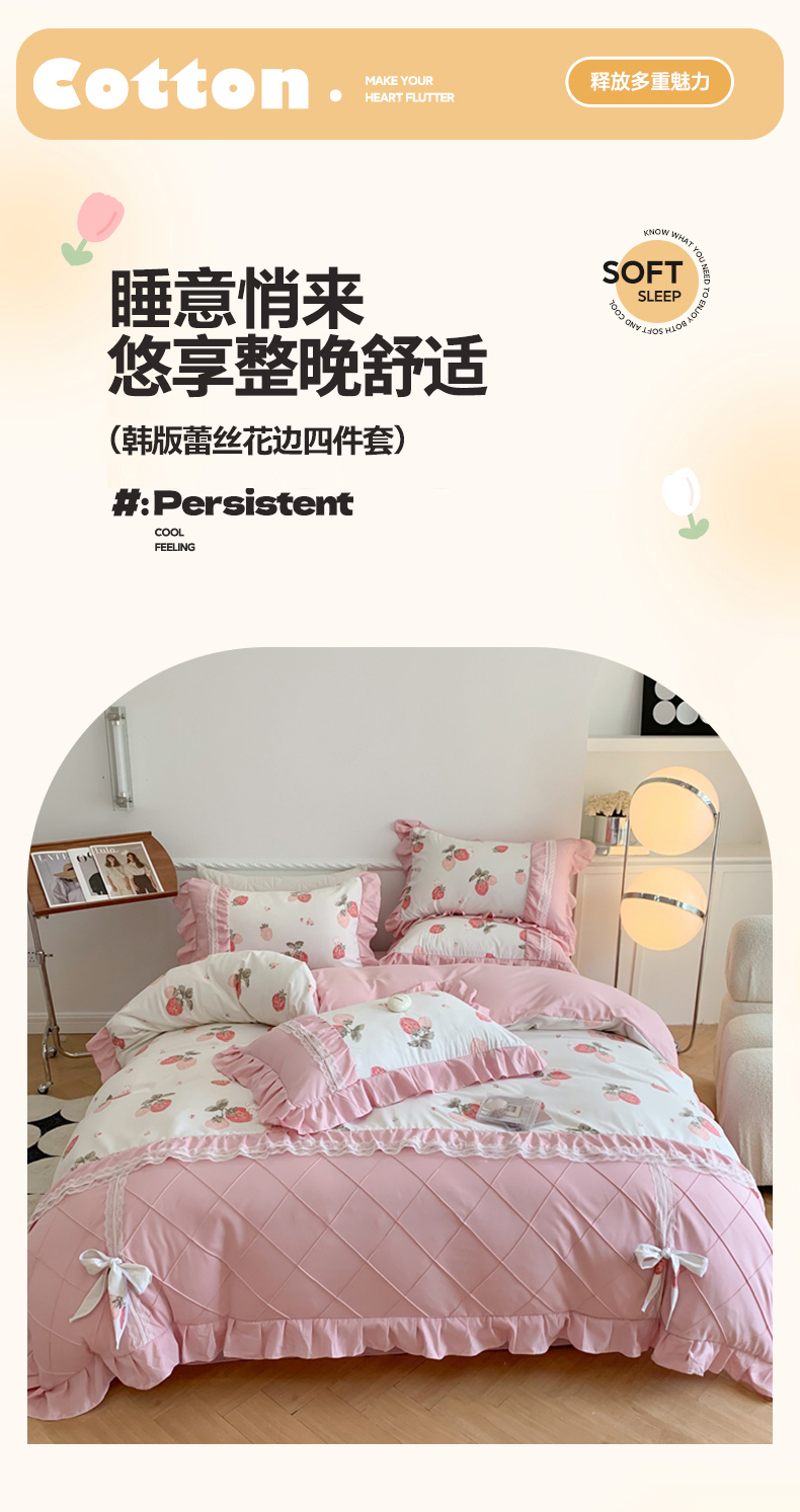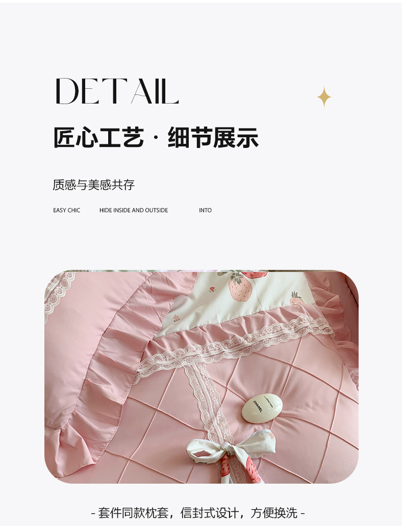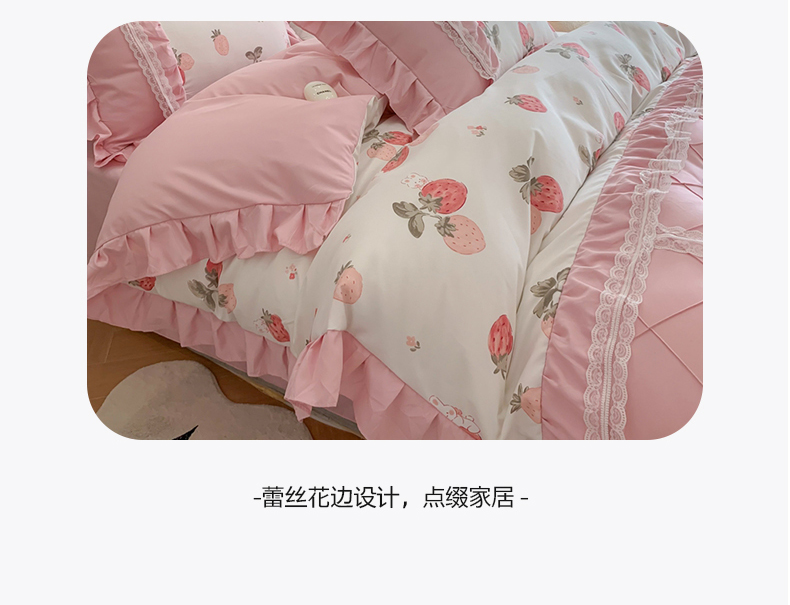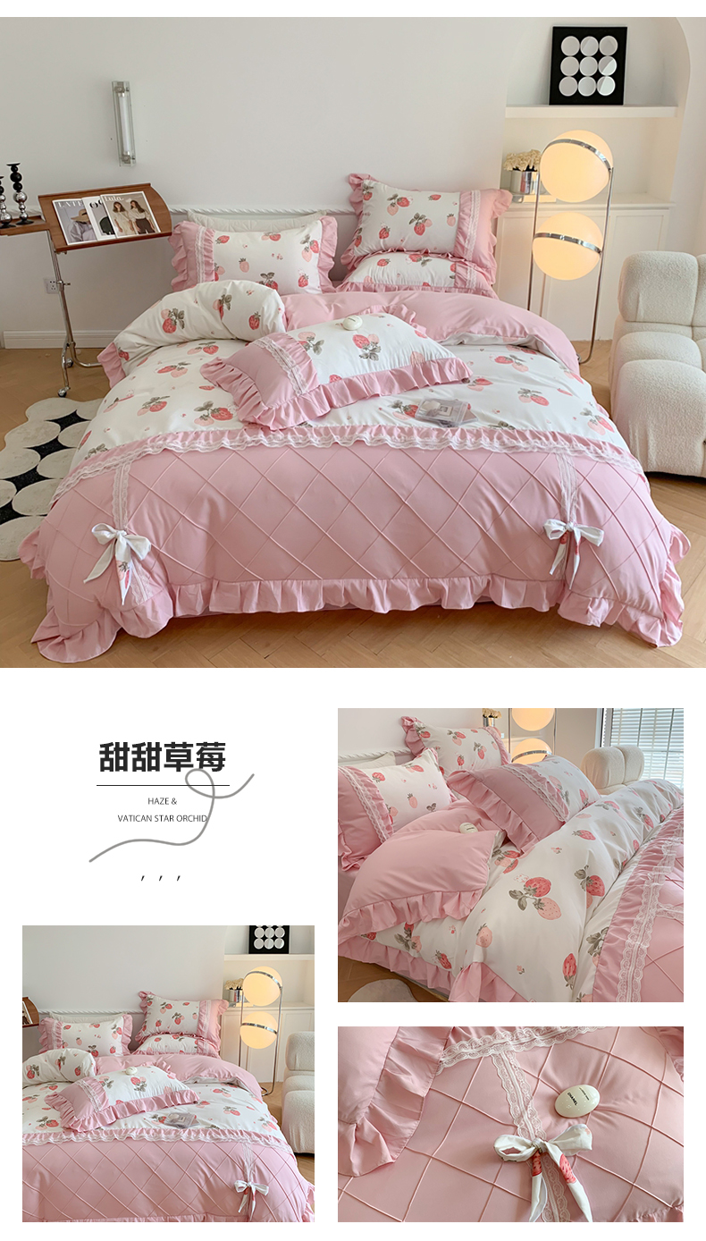 商品名称:吾欢心 2025新款蝴蝶结款韩版蕾丝花边四件套 甜甜草莓