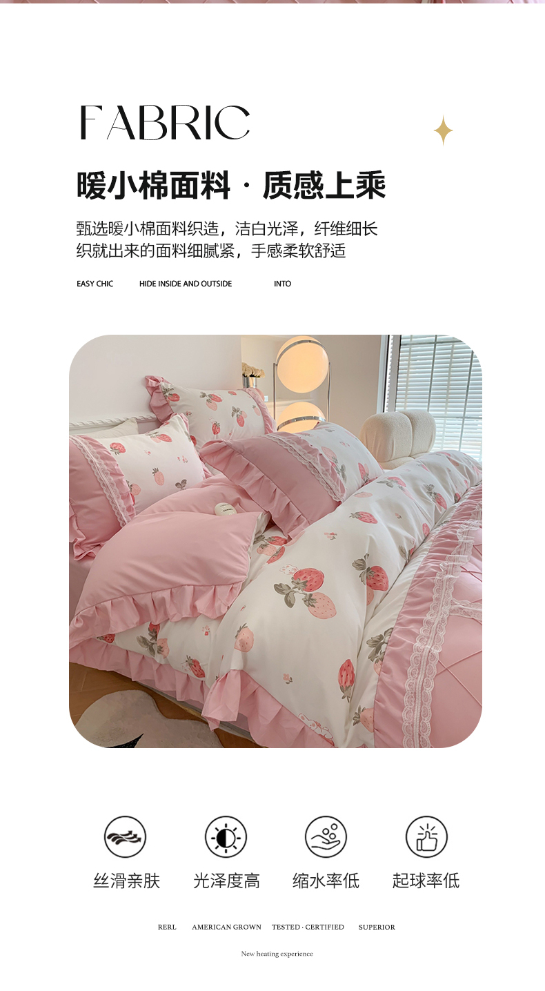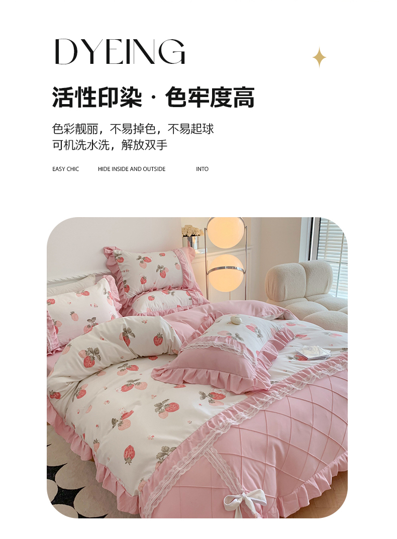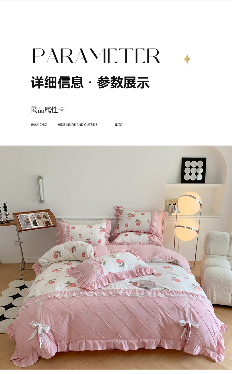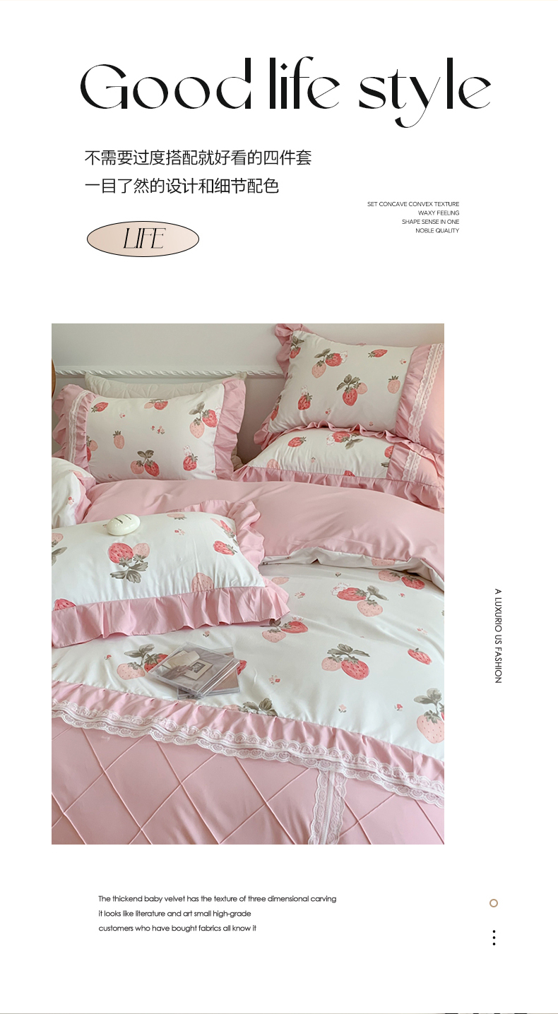商品名称:吾欢心 2025新款蝴蝶结款韩版蕾丝花边四件套 甜甜草莓