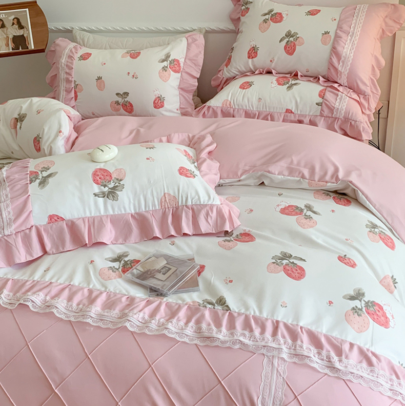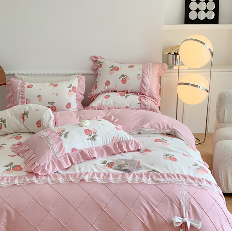 吾欢心 2025新款蝴蝶结款韩版蕾丝花边四件套 甜甜草莓