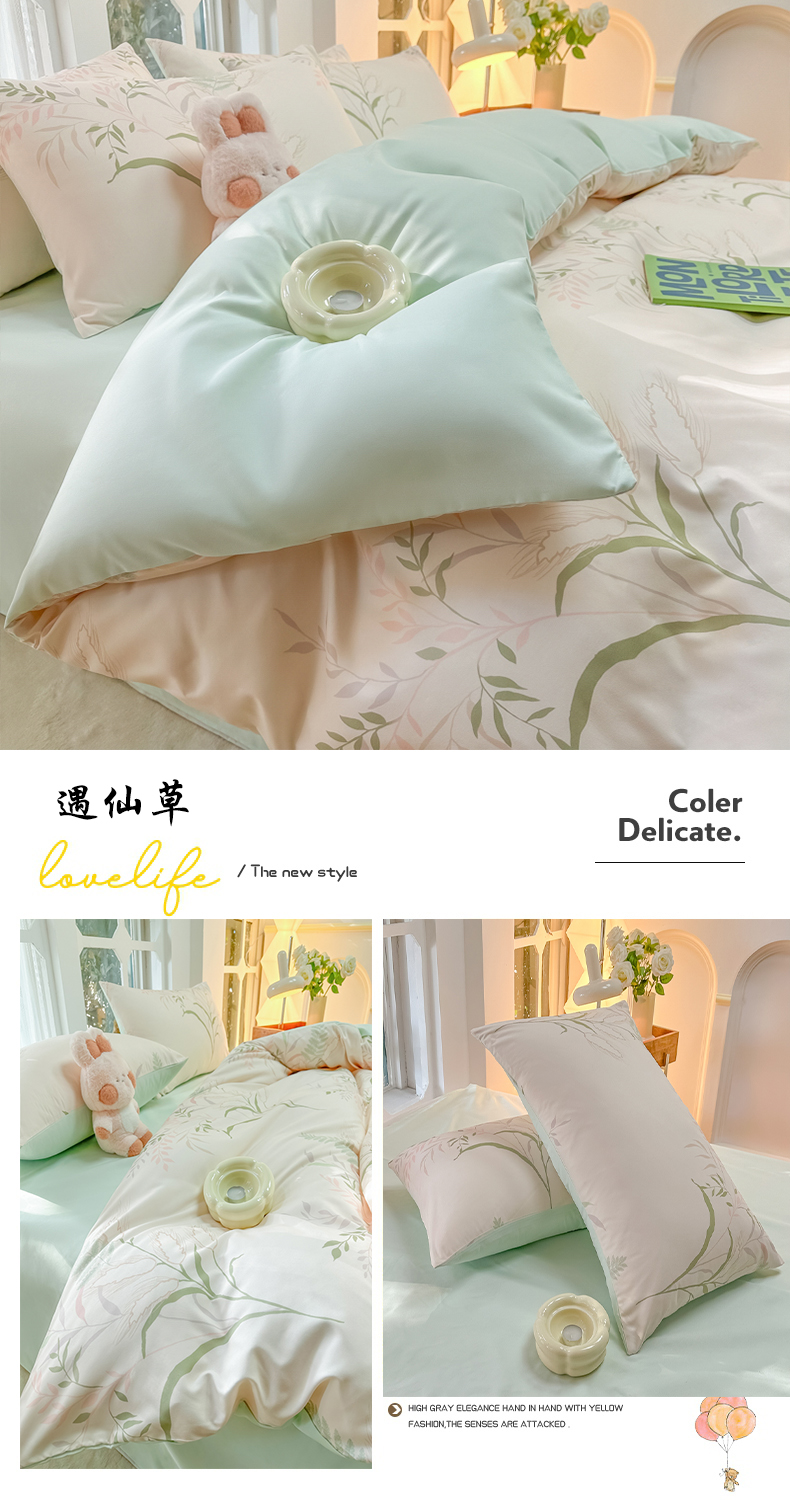 当前位置: 91家纺网 > 商品网购 > 床品套件 > 四件套 > 水洗棉四件套 > yyds网供 2024新款水洗棉印花卡通四件套花卉小清新单件被套 遇仙草
