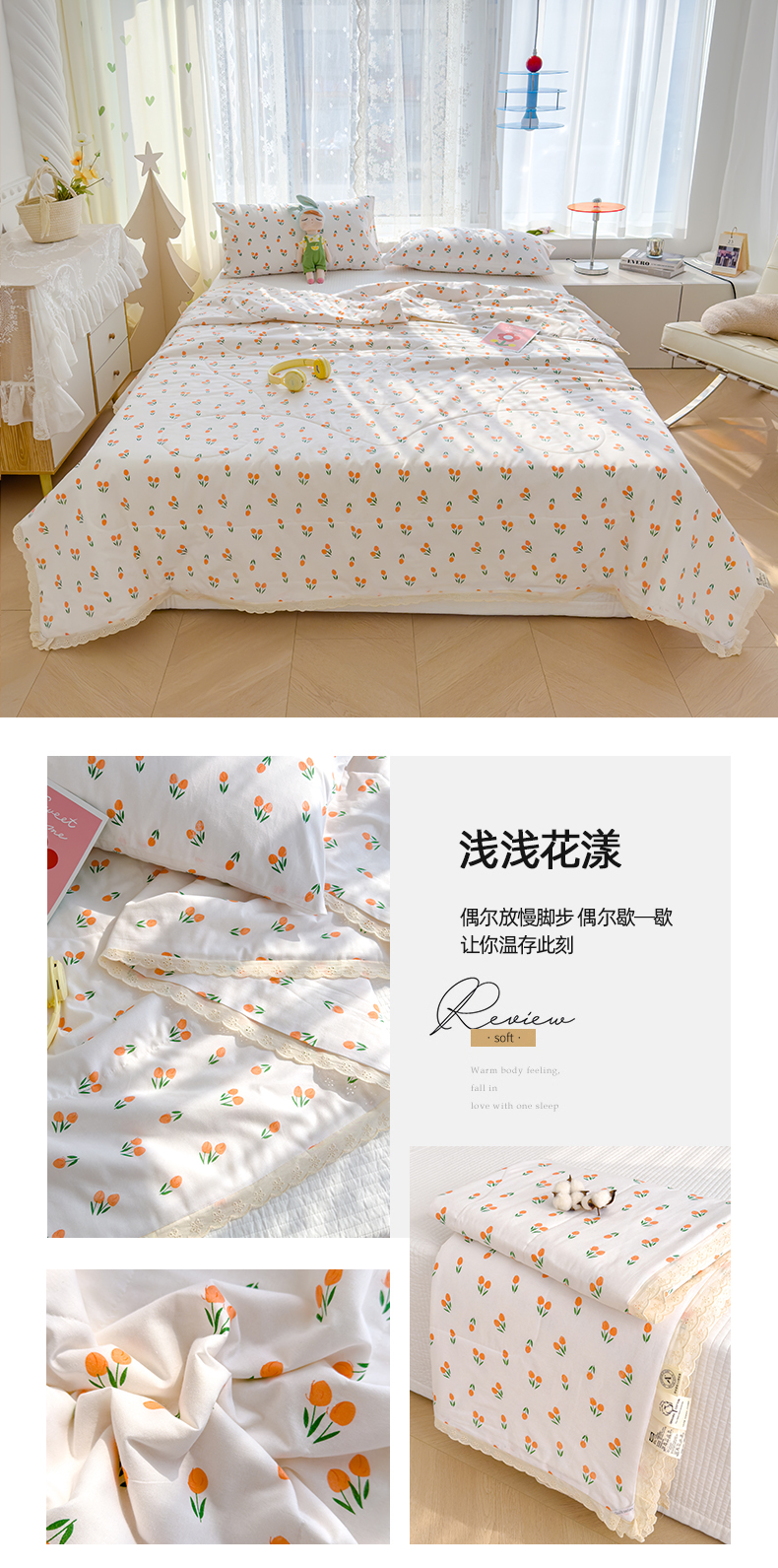 • 91家纺网 家纺一手货源 找家纺 芯恋家居 2025新品全棉绣花边工艺款全棉棉花夏被春秋被 浅浅花漾