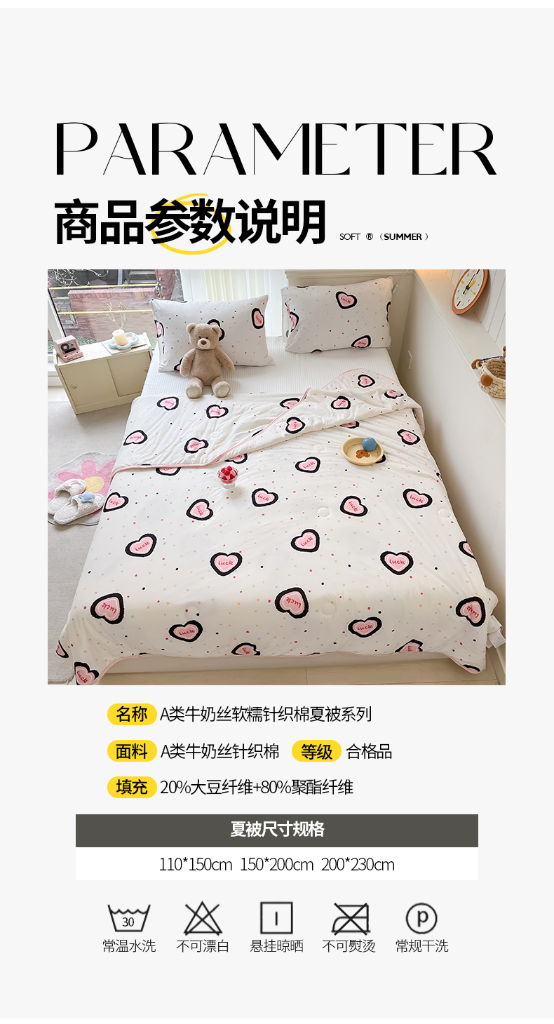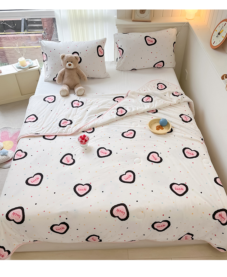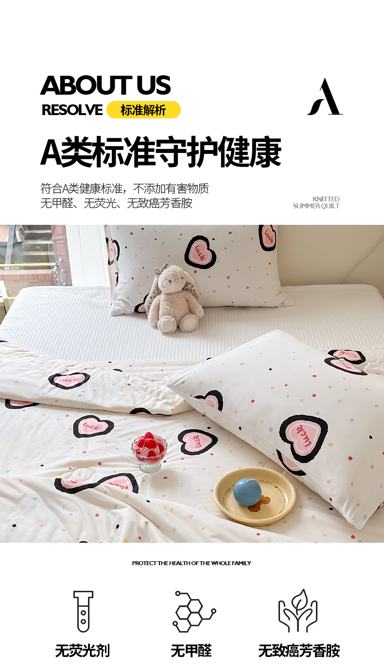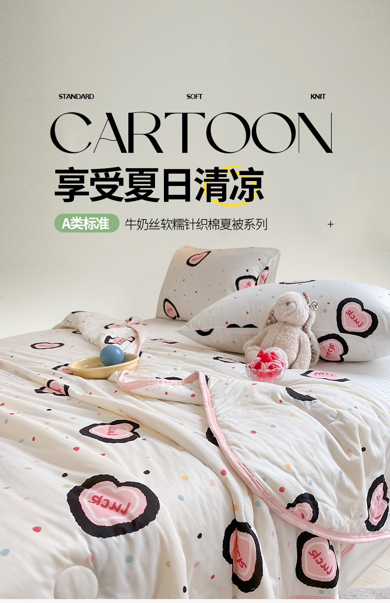 商品名称:桃子家居 2024新款A类高品质牛奶丝软糯针织棉夏被 针织棉-幸运甜心