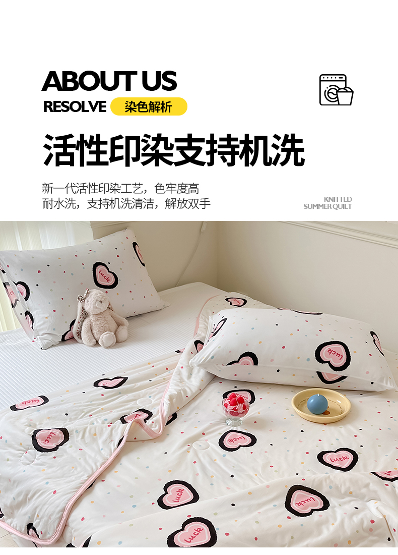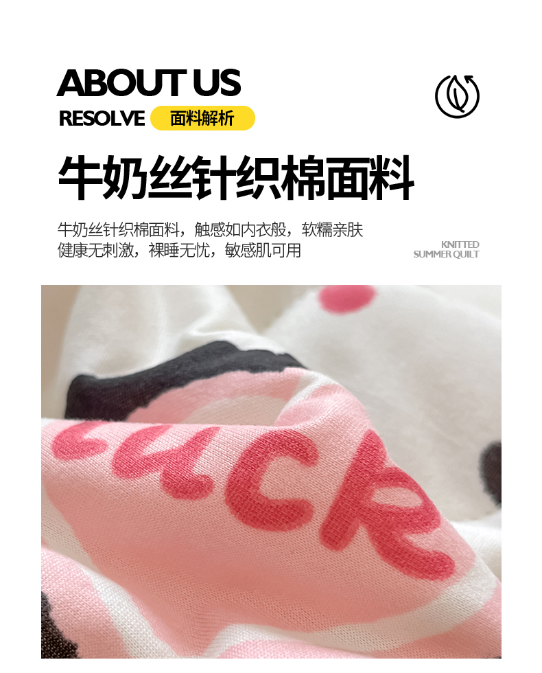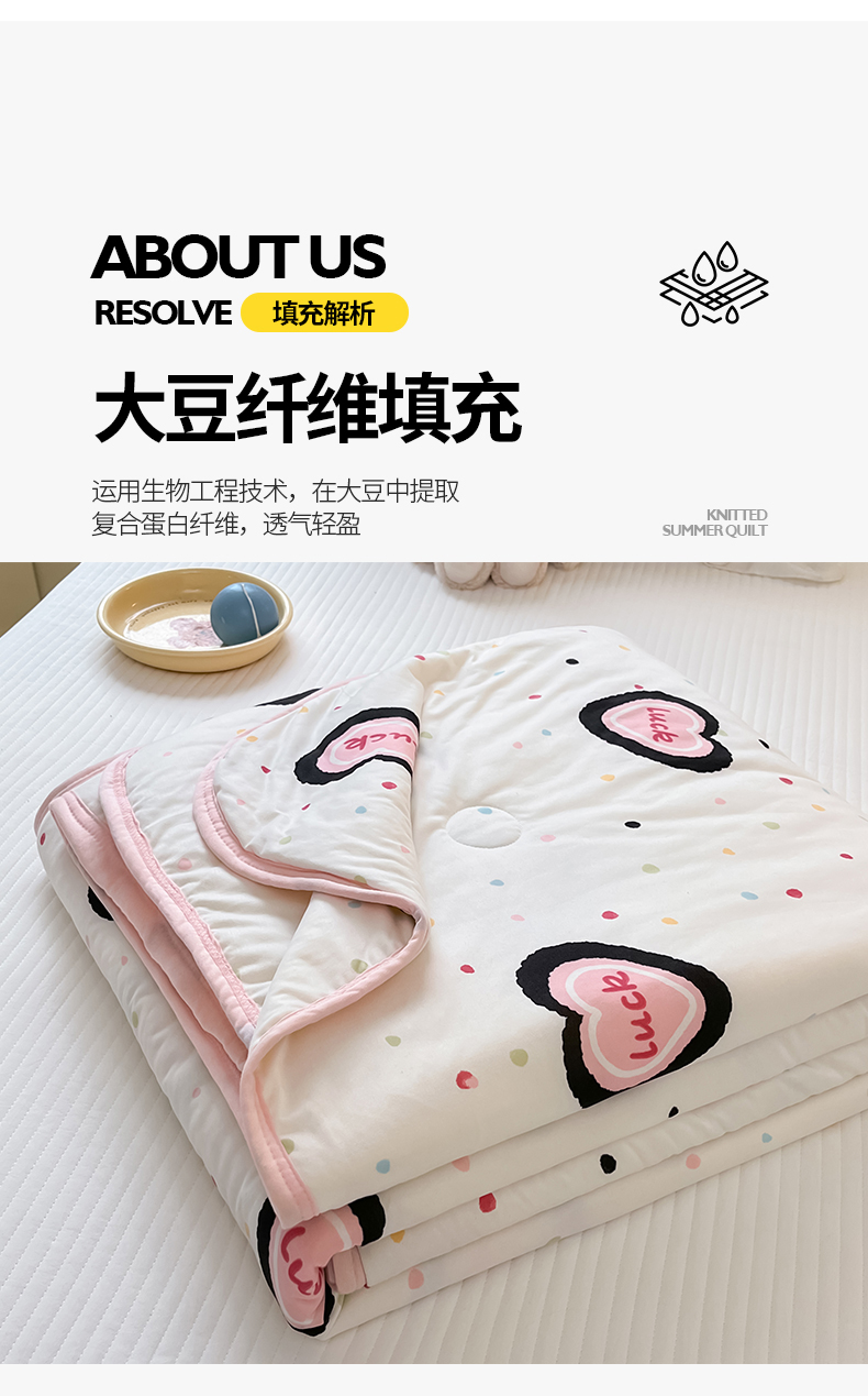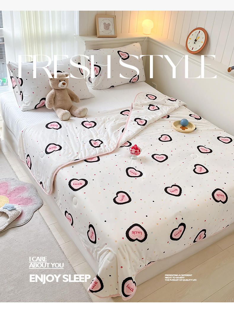 商品名称:桃子家居 2024新款A类高品质牛奶丝软糯针织棉夏被 针织棉-幸运甜心