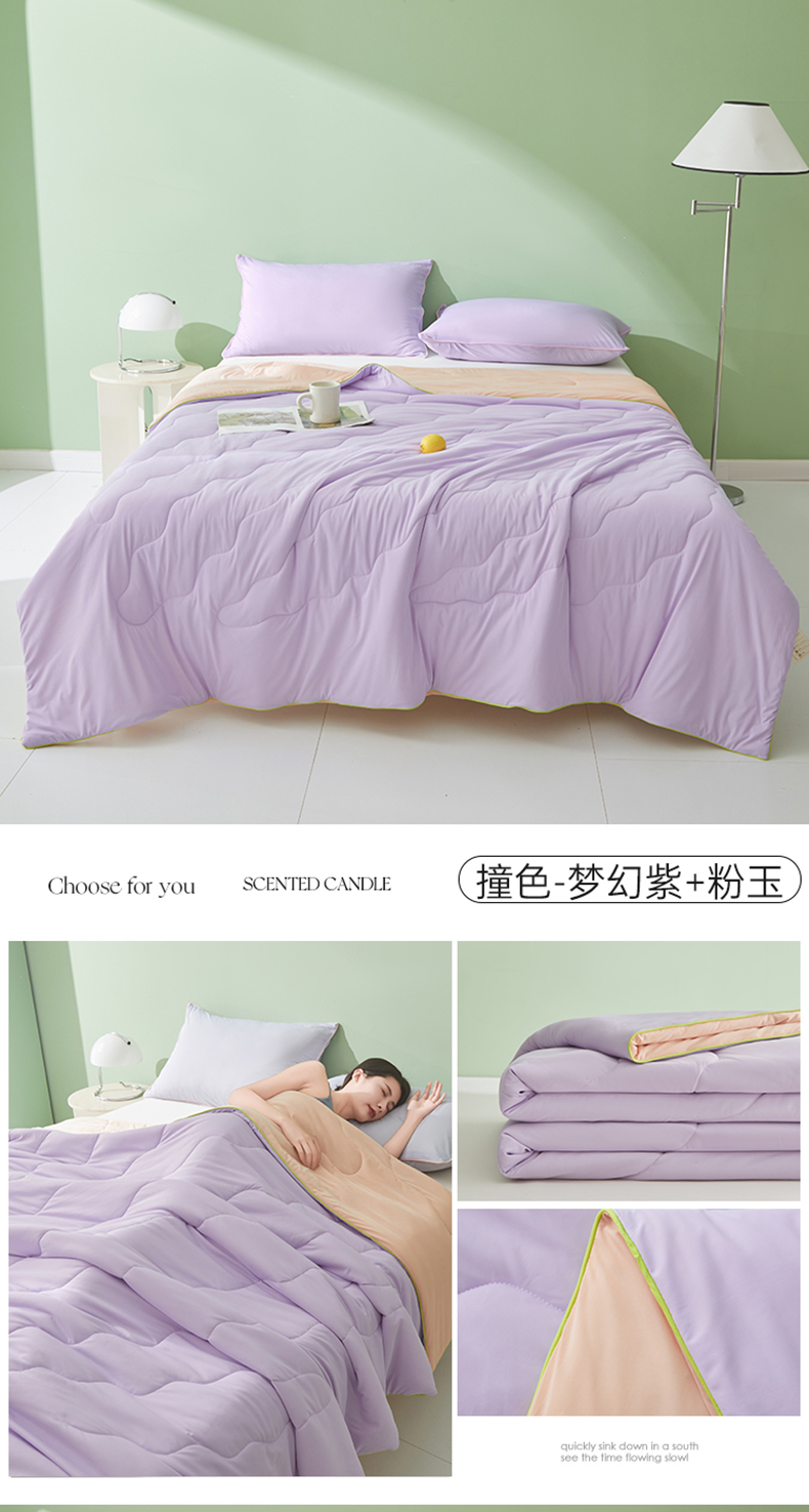 商品名称:董韵家纺 2025新款A类氨纶凉感丝西瓜抗菌夏被 撞色-梦幻紫+粉玉