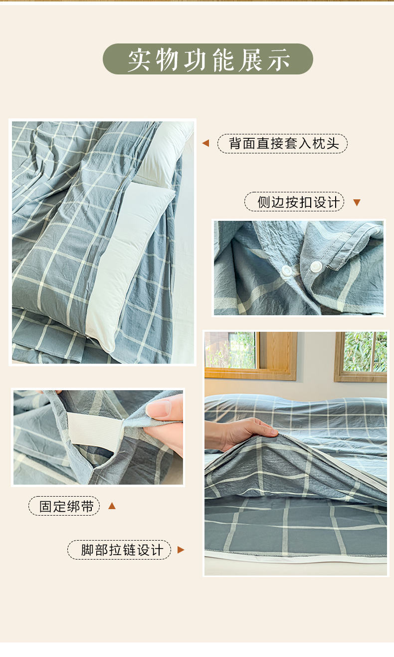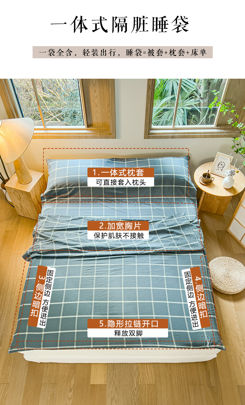 商品名称:暖阳 2025新款A类无印风水洗棉睡袋 睡袋-马卡龙大格