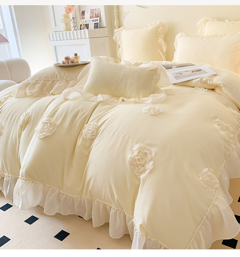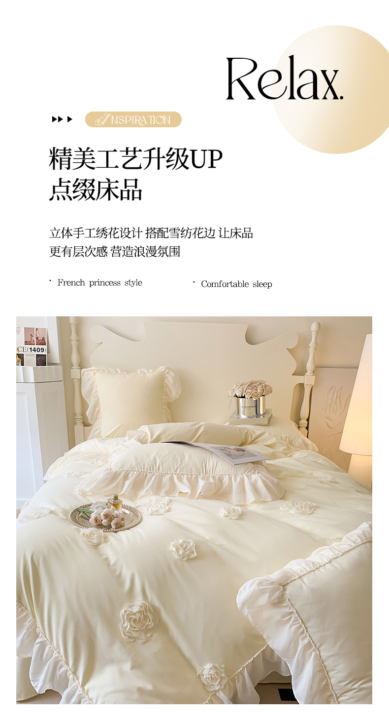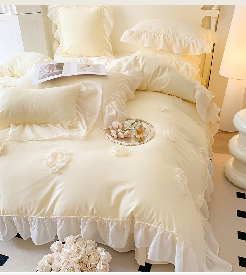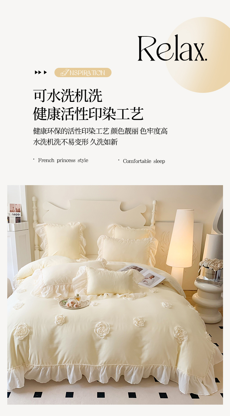 (总)吾欢心 2025新款糯小棉立体蝴蝶花边四件套-蝶恋花系列,蝶恋花白,蝶恋花粉,蝶恋花黄,蝶恋花咖,蝶恋花蓝,蝶恋花绿,蝶恋花紫