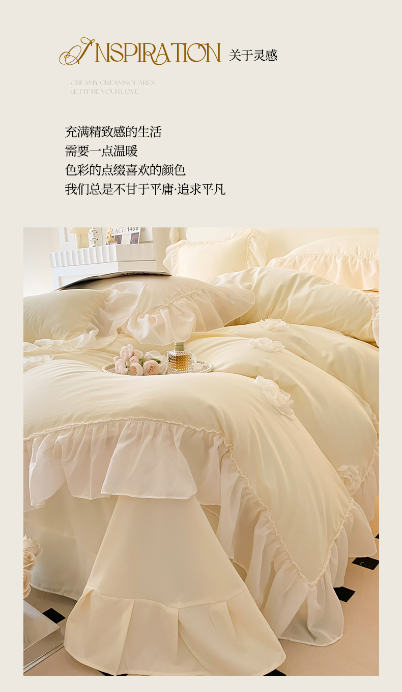 (总)吾欢心 2025新款公主风雪纺边四季通用夹棉床盖,床盖白,床盖粉,床盖黄,床盖咖,床盖绿,床盖抹茶绿,床盖紫