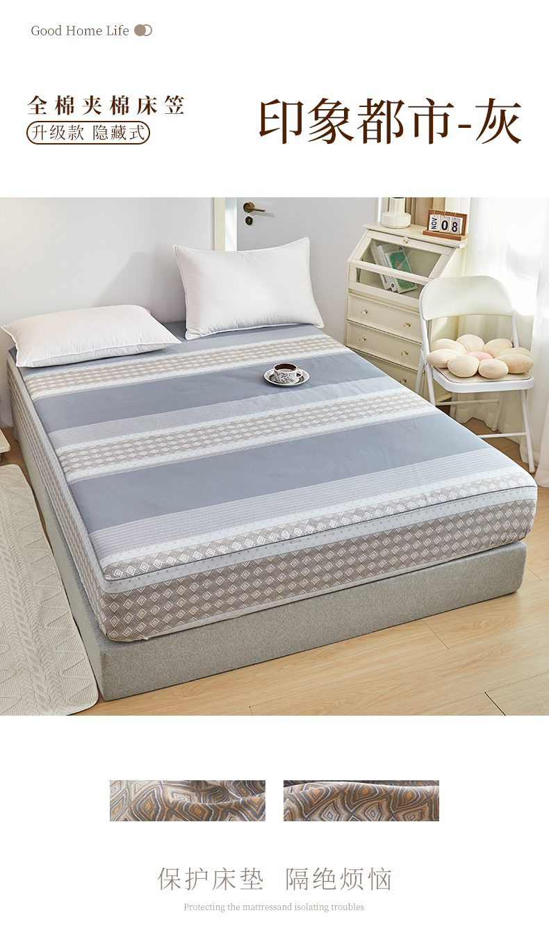 商品名称:元元 2024新款小清新隐藏式夹棉套件单品-夹棉床笠 印象都市-灰