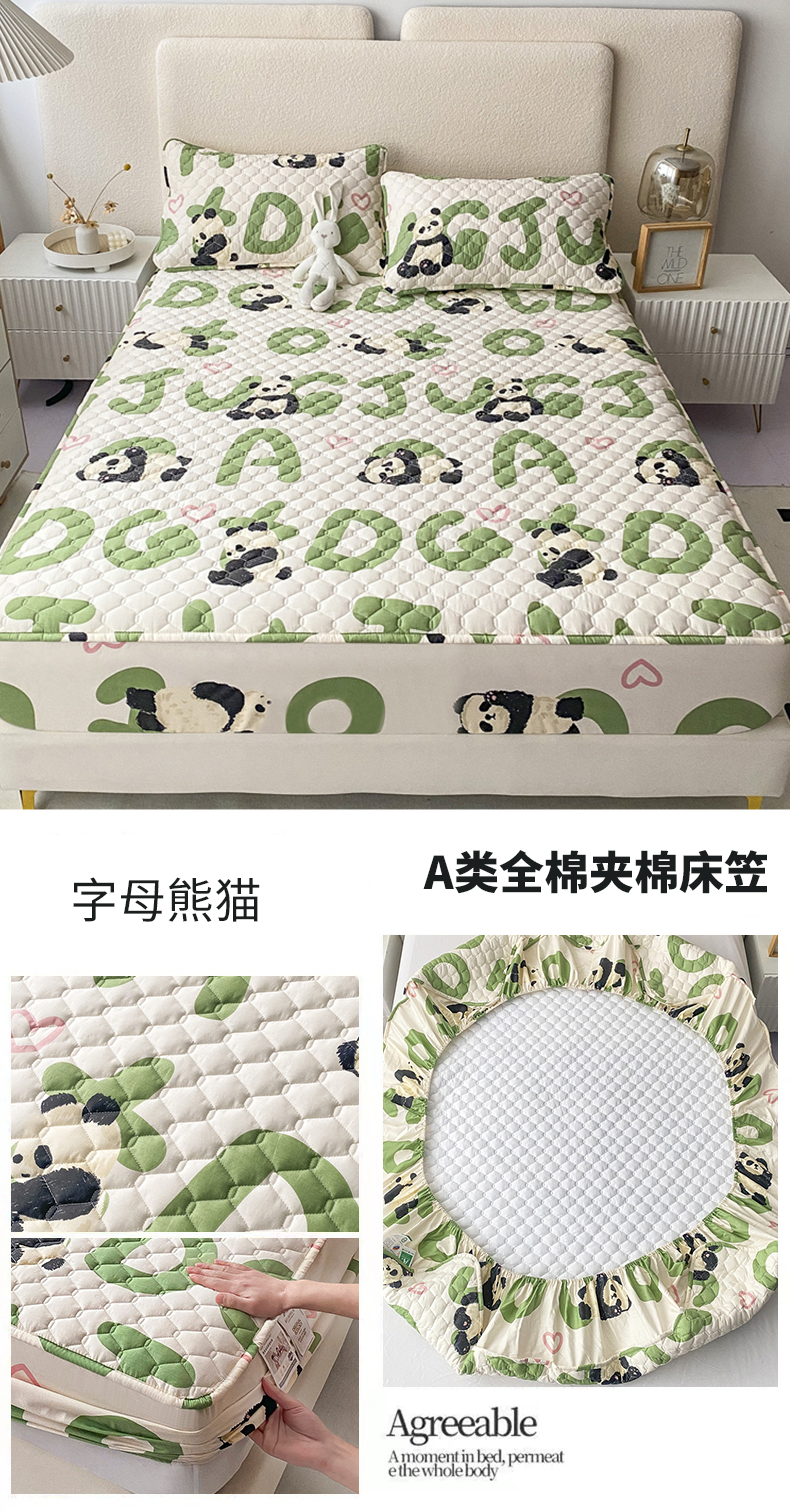 九亭家纺 2024新款A类全棉抗菌夹棉床笠 全棉-字母熊猫