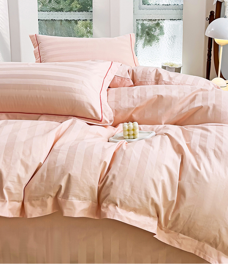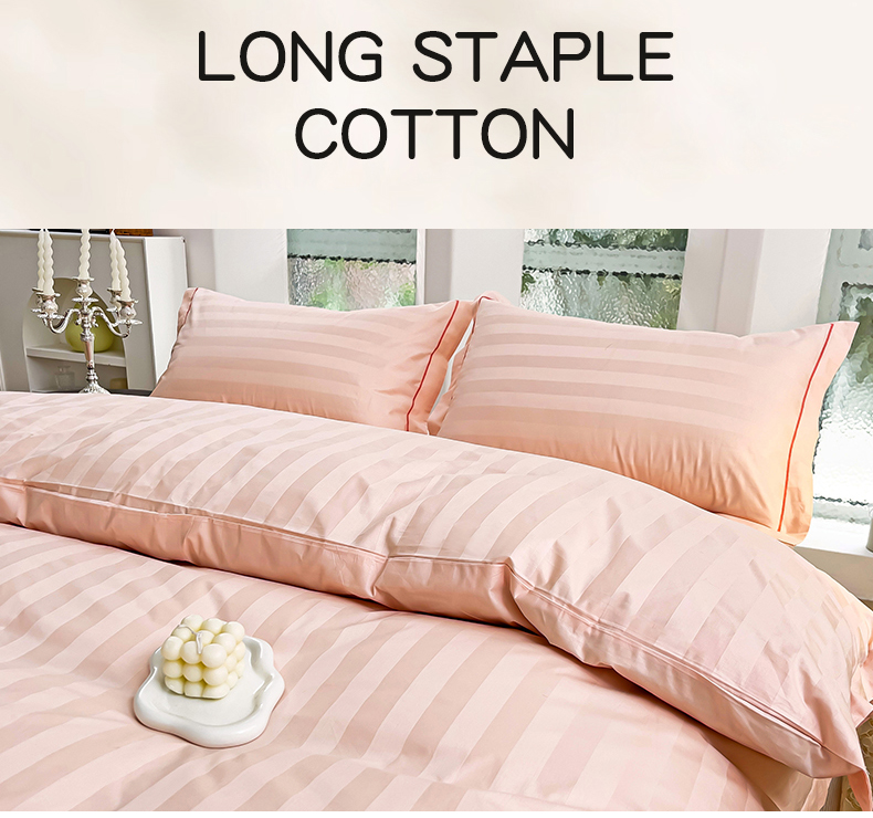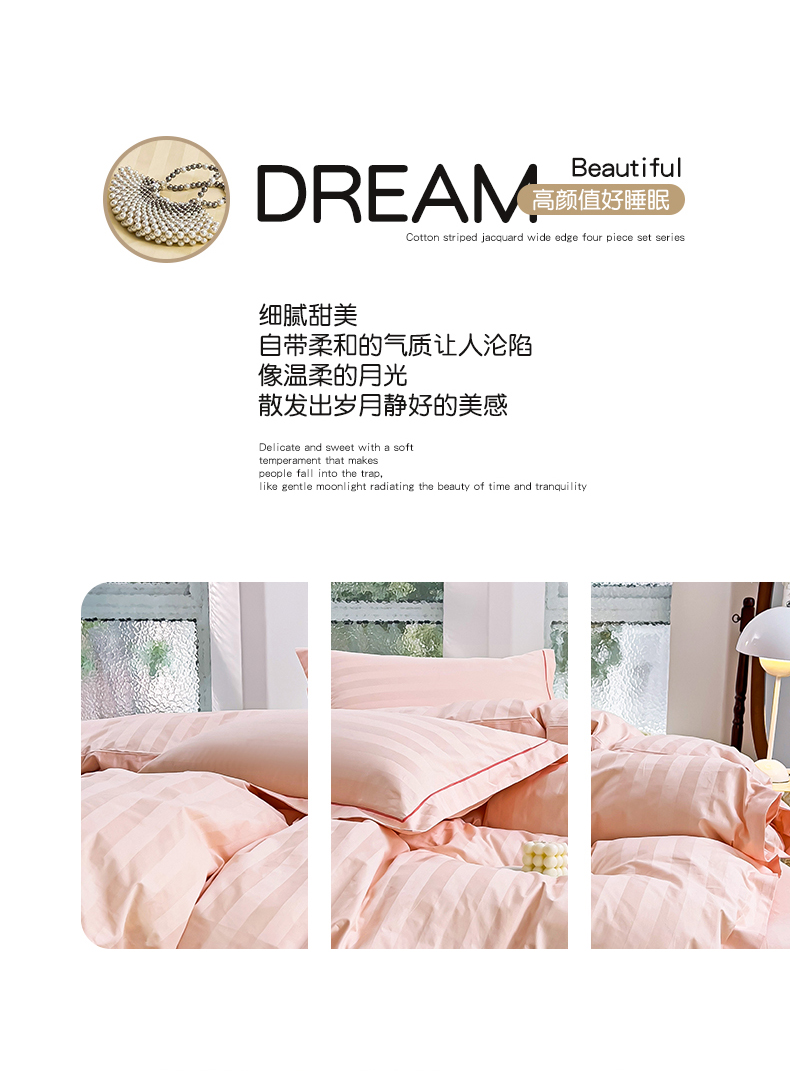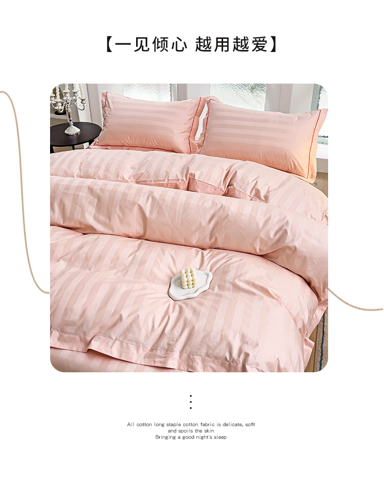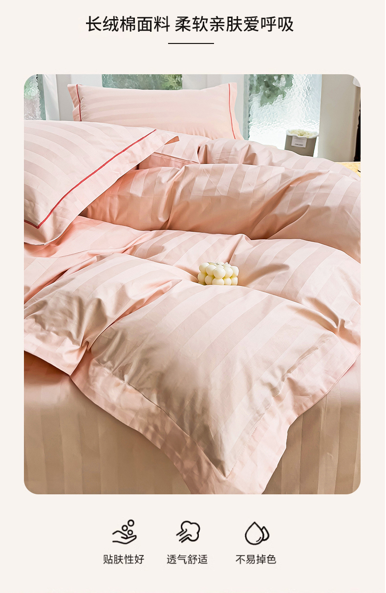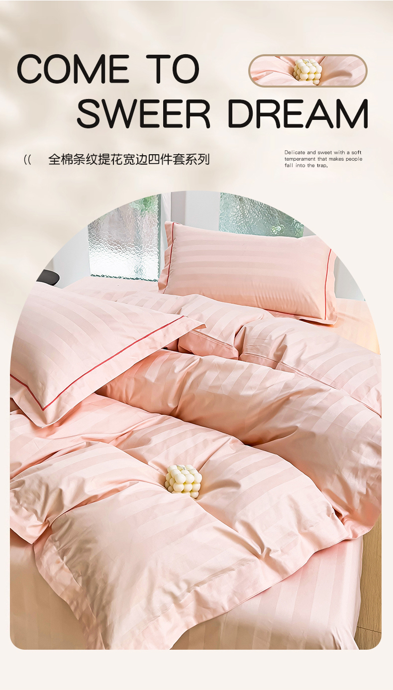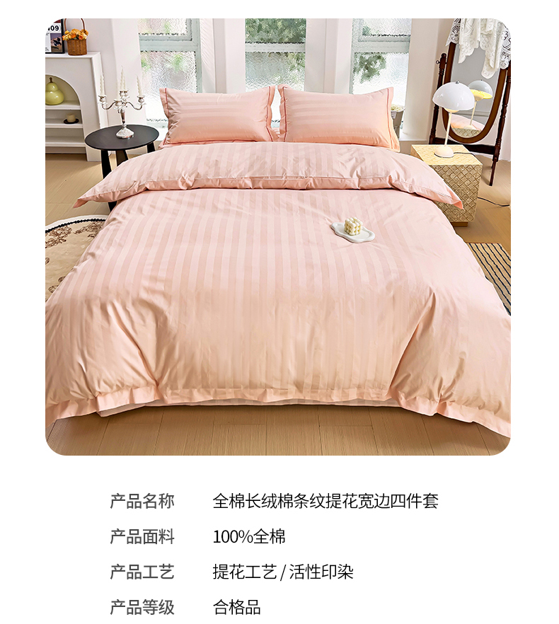 品乐家纺 2024新款60支长绒棉条纹宽边四件套 宽边条纹玉