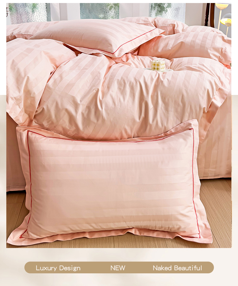 (总)品乐2025新款60支长绒棉提花条纹无印风全棉四件套,条纹白色,条纹豆沙,条纹粉色,条纹灰色,条纹卡其,条纹米黄,条纹浅绿,条纹浅玉,条纹天蓝