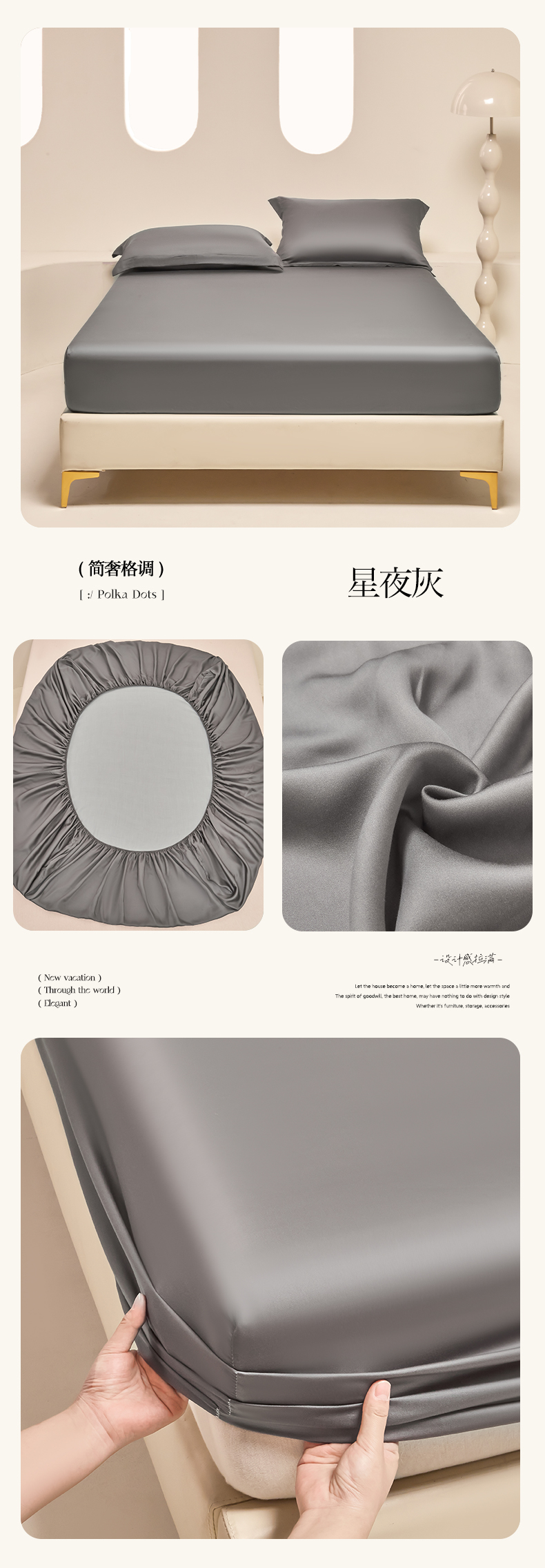 商品名称:涵宸 2024新款兰精天丝棉纯色单品-床笠 床笠-星夜灰