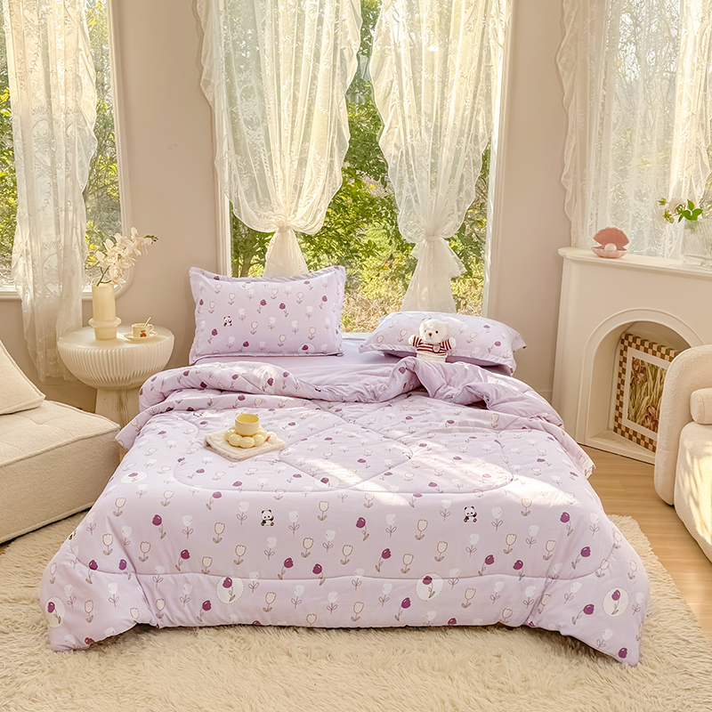 • 91家纺网 家纺一手货源 找家纺 家贝爱 2024款糯糯棉夏被春秋被被芯夏被四件套 恋薇紫