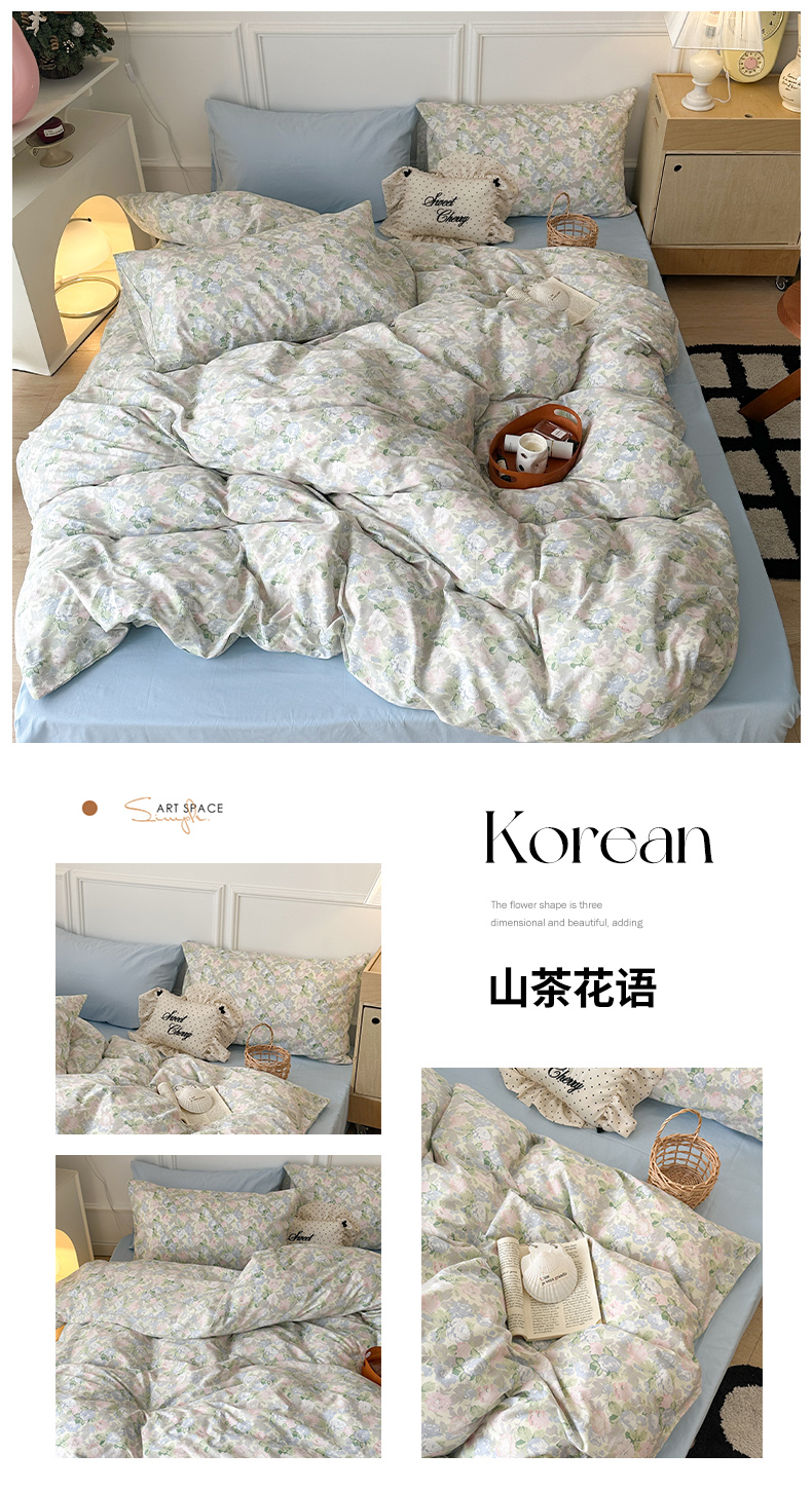 商品名称:昔可家纺 2024新款韩式混搭系列四件套 山茶花语