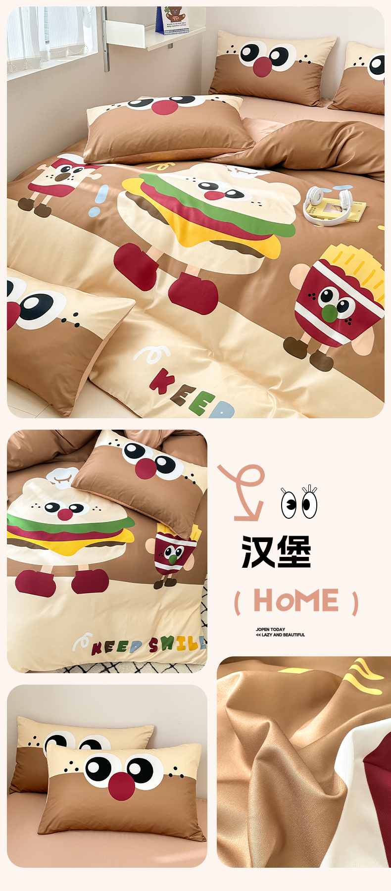 (总)摩卡(乐趣) 2025秋冬新品网红款水洗棉四季款四件套,豹纹熊-粉,豹纹熊-绿,彩虹兔,公仔蓝,梦幻粉,梦幻蓝,棋盘格公仔,太阳花粉,天使熊-粉,天使熊-咖,小熊头,熊头白,熊头橙,熊头咖,熊仔白