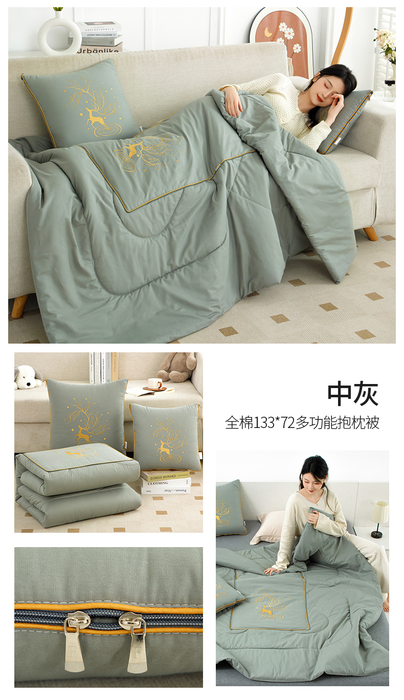 吉利家居 2024新款全棉抱枕被四季款 中灰
