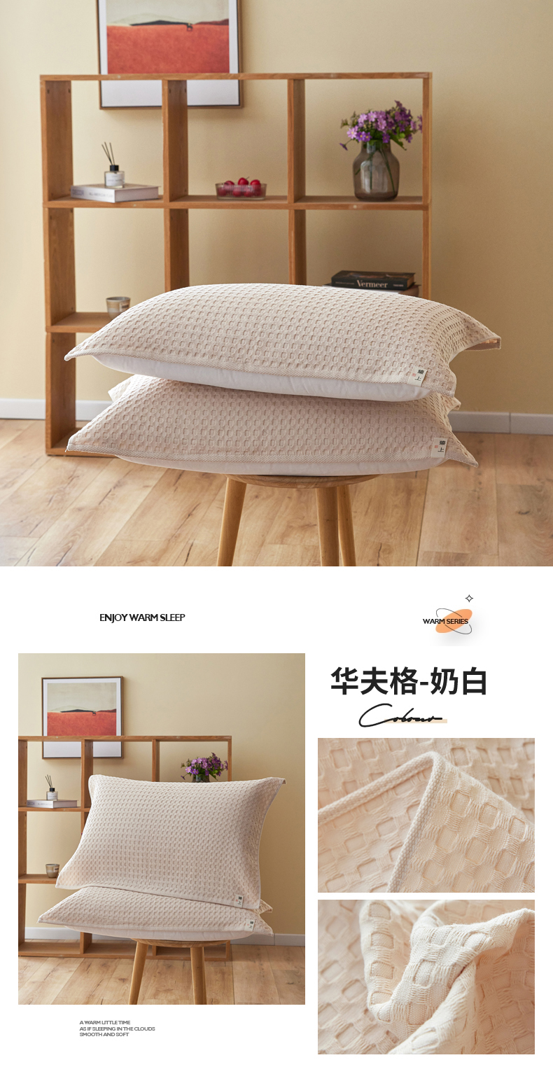 美宜家家纺 2025新款A类全棉华夫格枕巾 华夫格-奶白52*75cm/对
