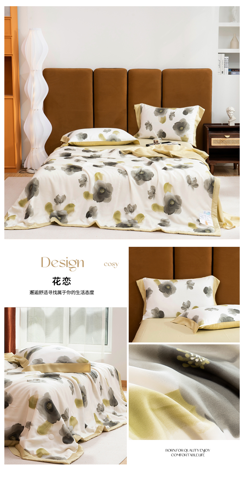 黛舒家居 2024新款莱赛尔天丝大豆夏被四件套 花恋