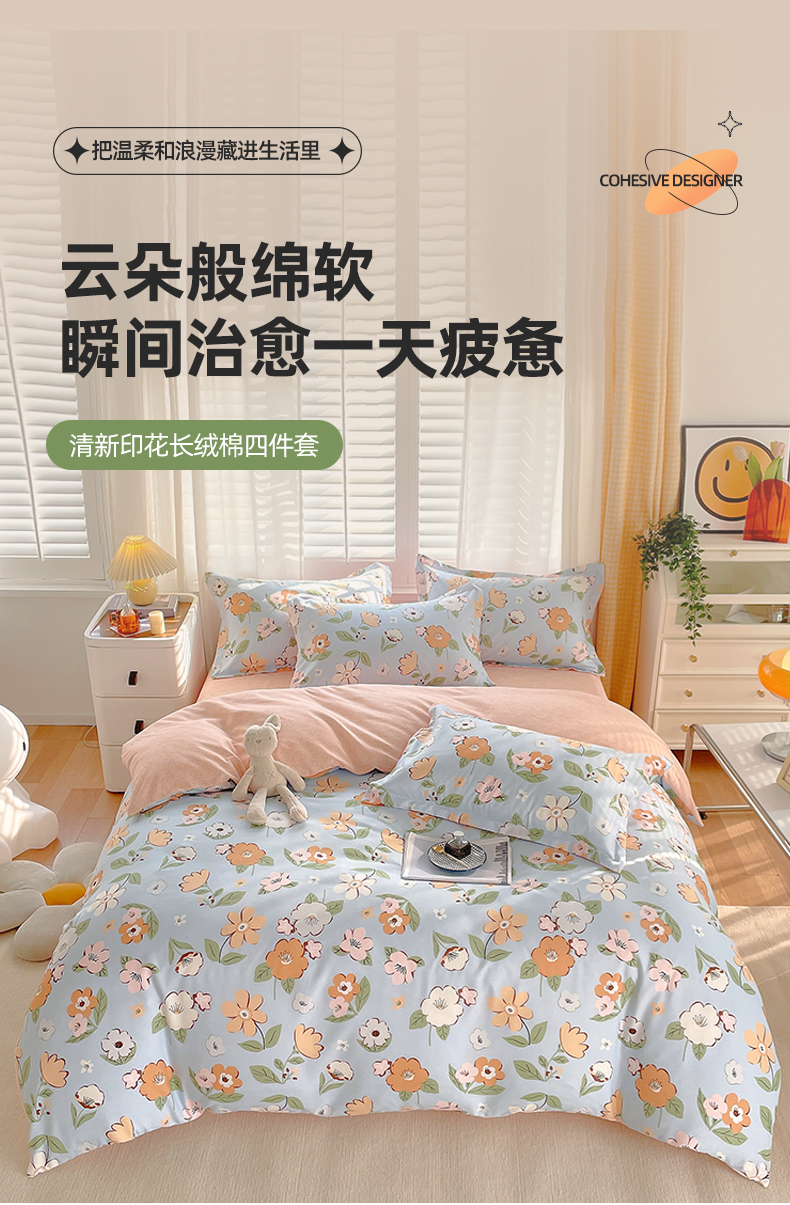 商品名称:(总)美宜家 2025新款植物羊绒加厚斜纹磨毛单被套四件套