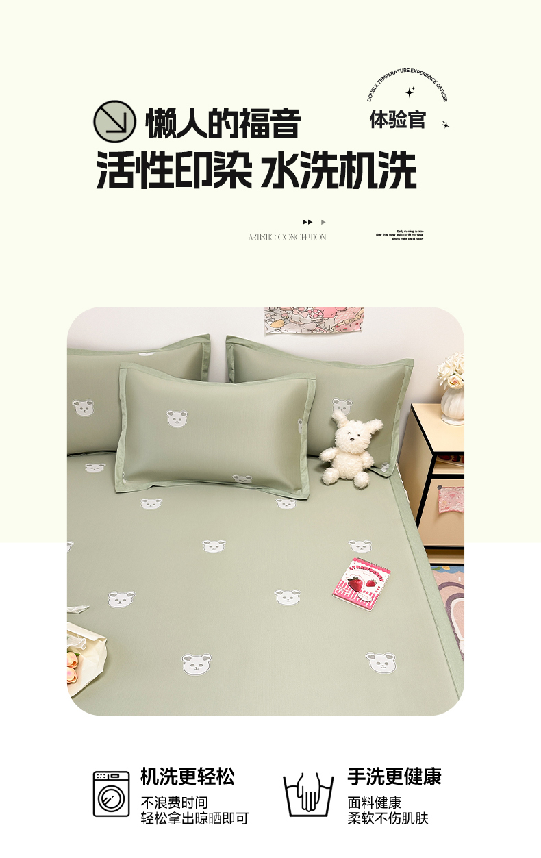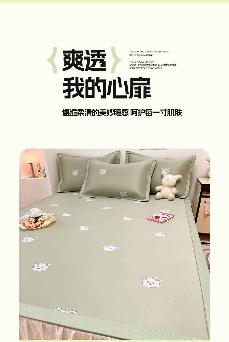 全季家居 2024新款卡通提花系列PE凉感席 小熊-清新绿