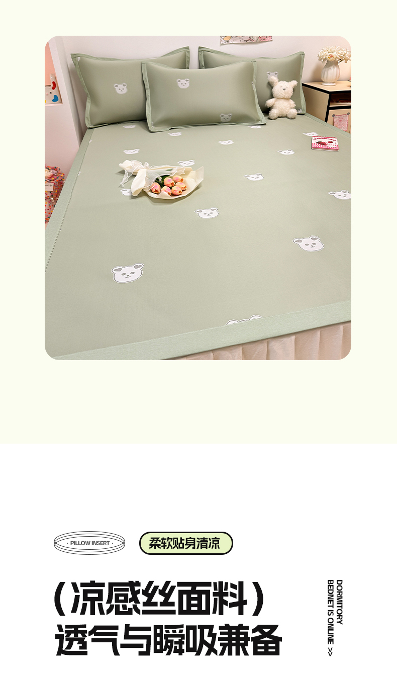 商品名称:全季家居 2024新款卡通提花系列PE凉感席 小熊-清新绿