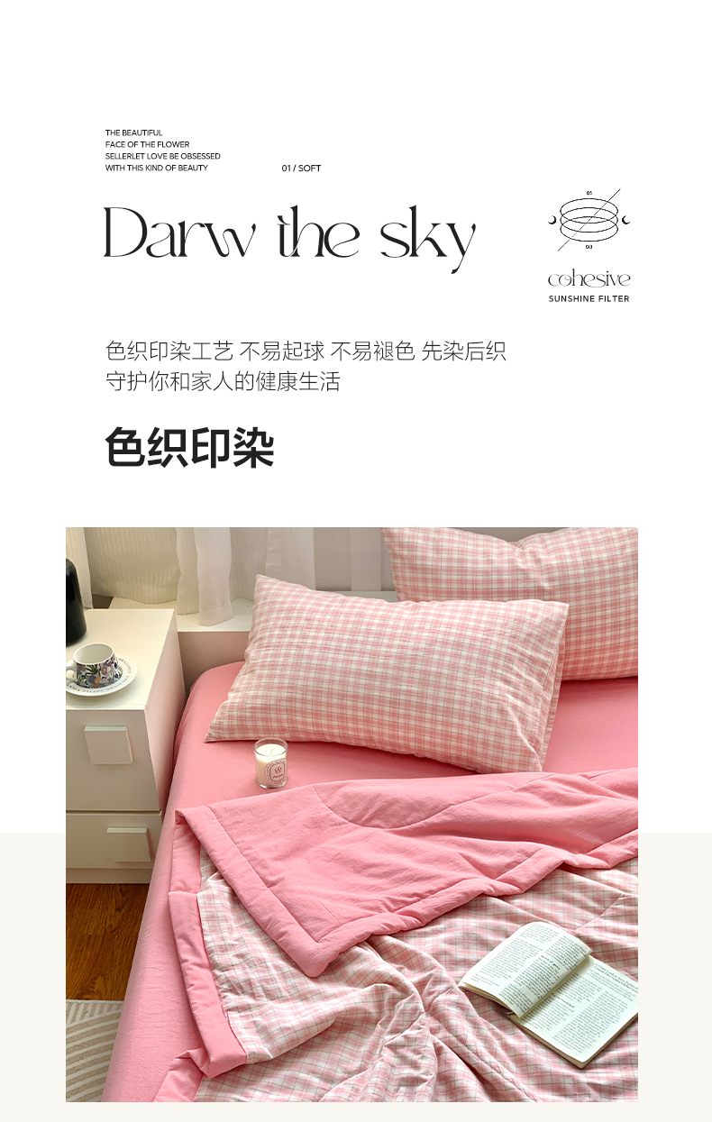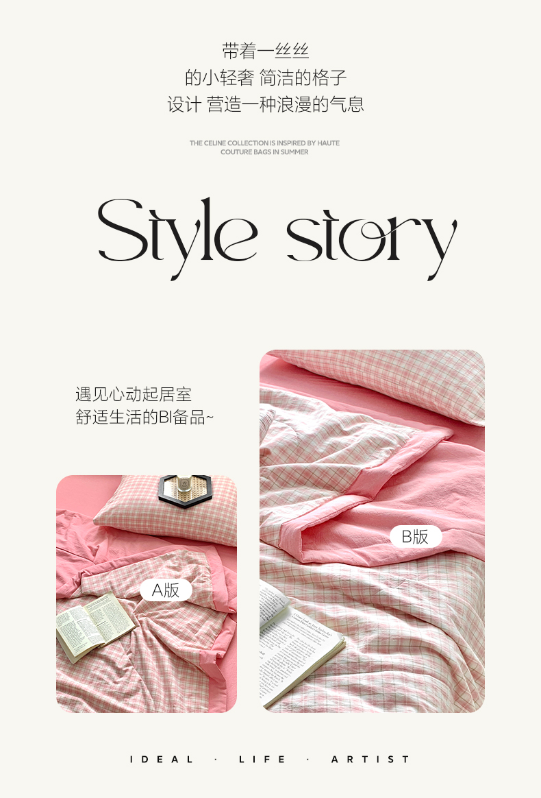 当前位置: 91家纺网 > 商品网购 > 床品套件 > 四件套 > 水洗棉四件套 > 水洗的故事2025新款A类色织水洗棉丝夏被四件套系列 春桃格
