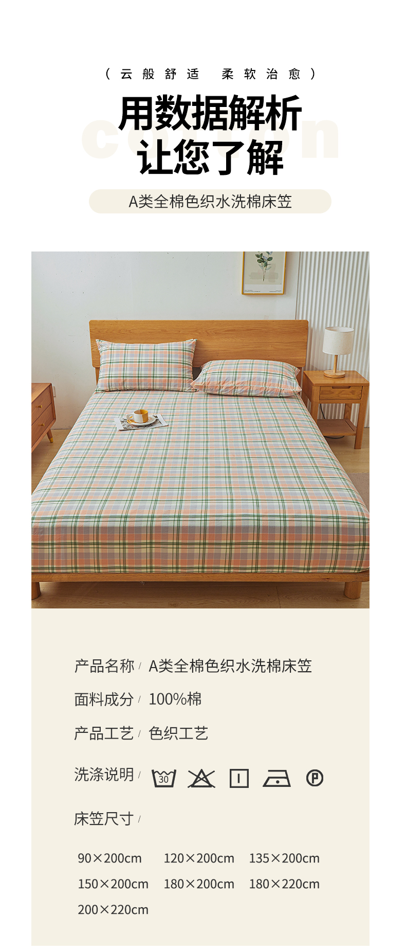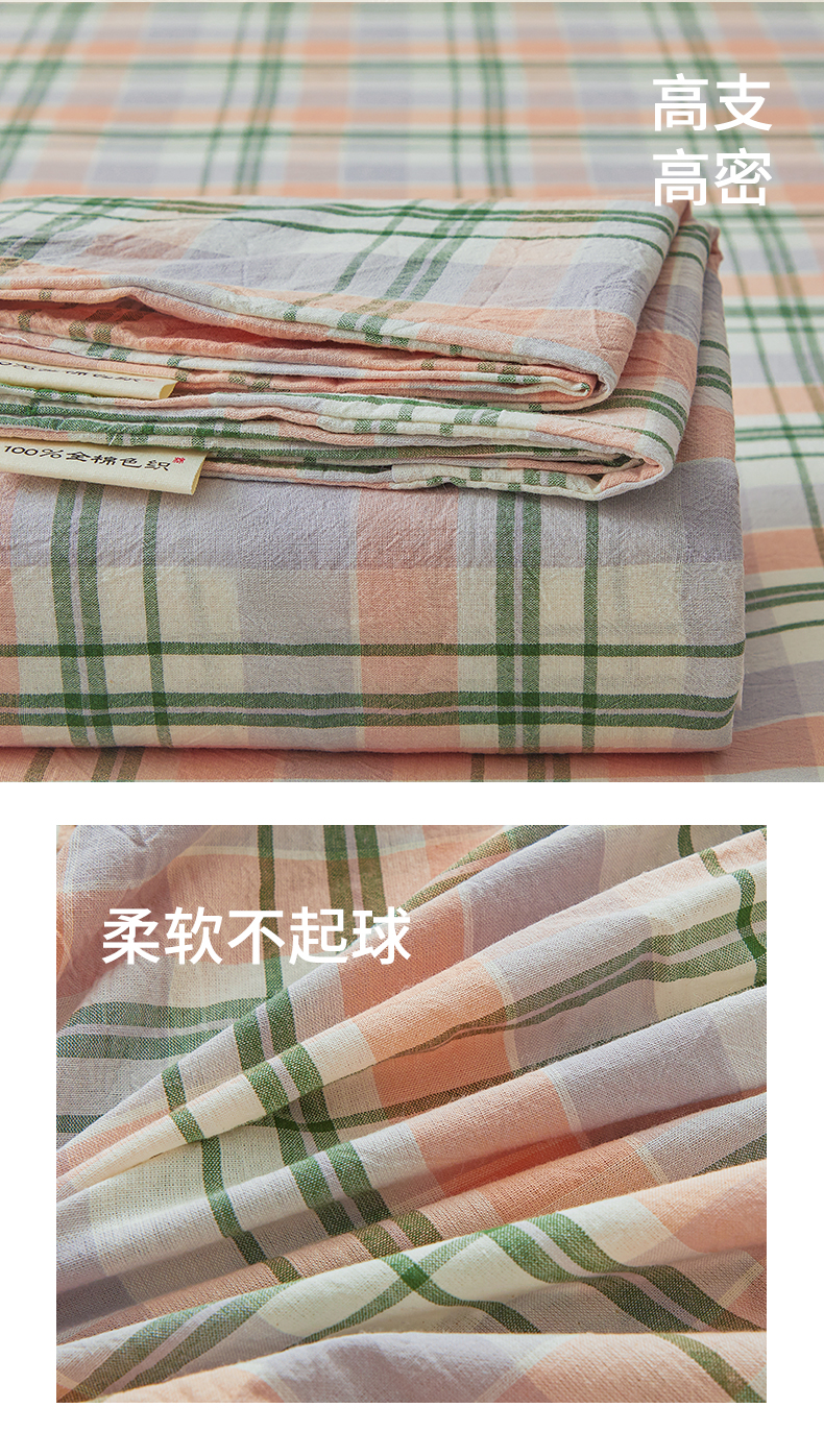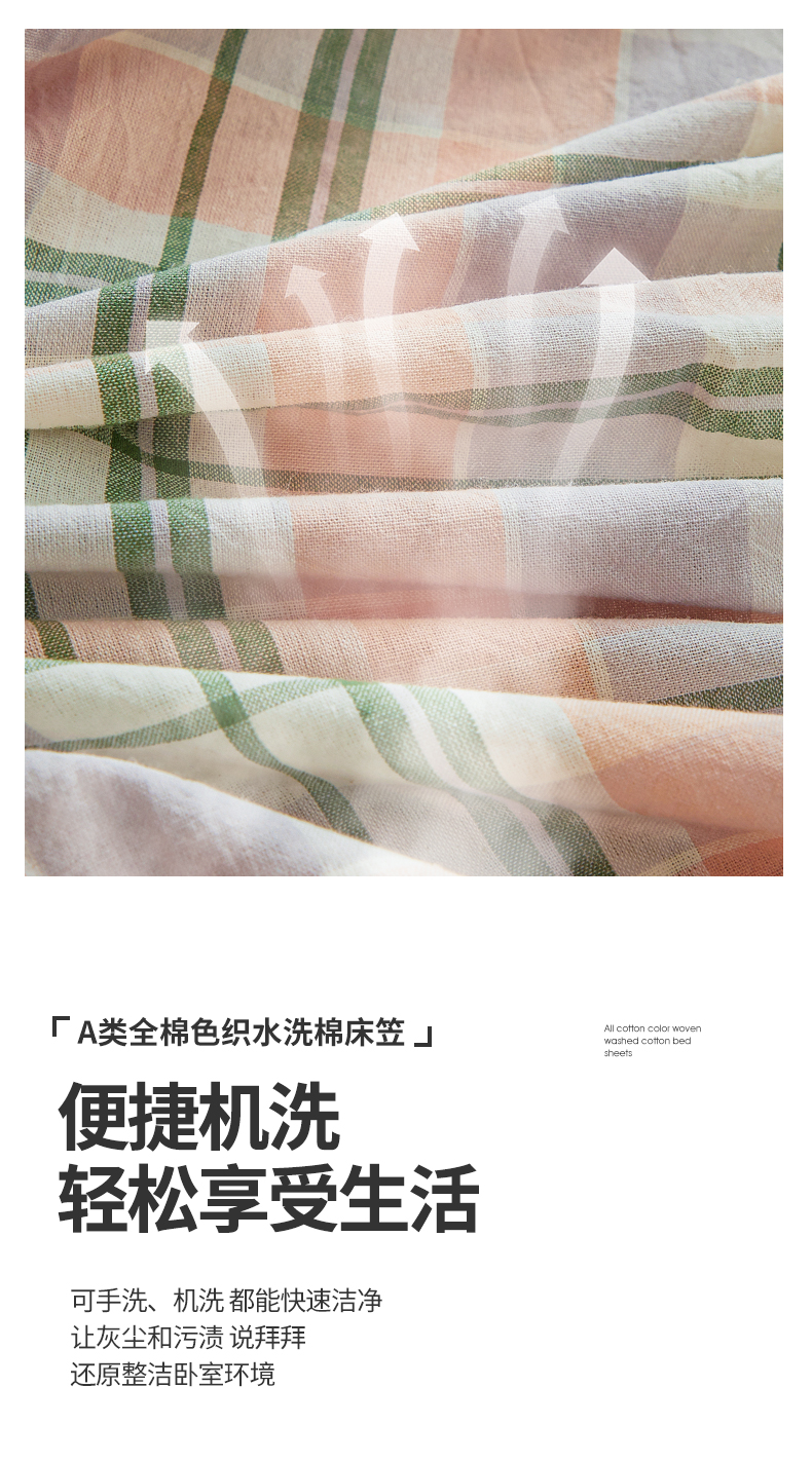 • 91家纺网 家纺一手货源 找家纺 居眠 2024新款全棉色织单纯水洗棉无印 床笠 映梦 粉