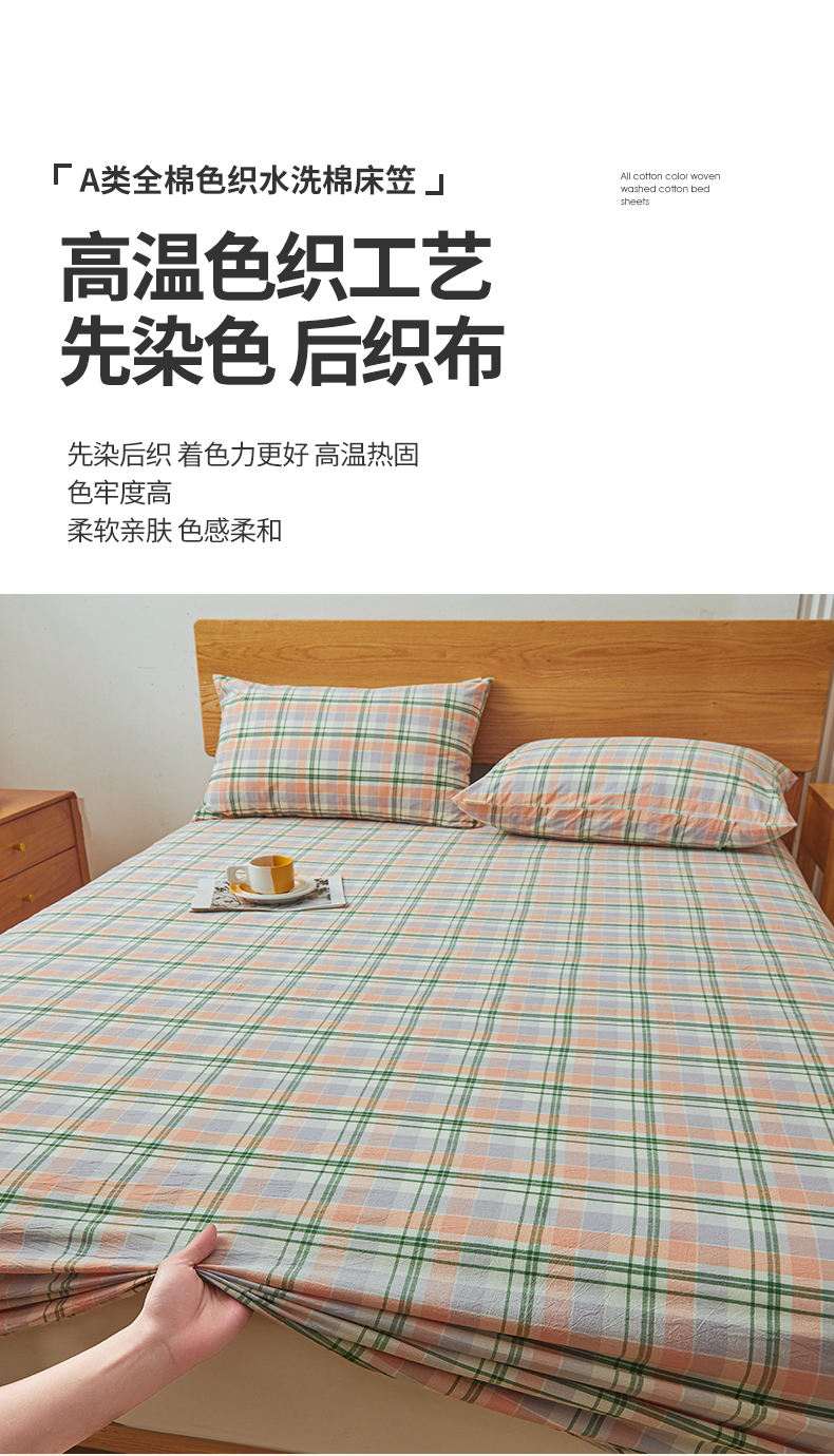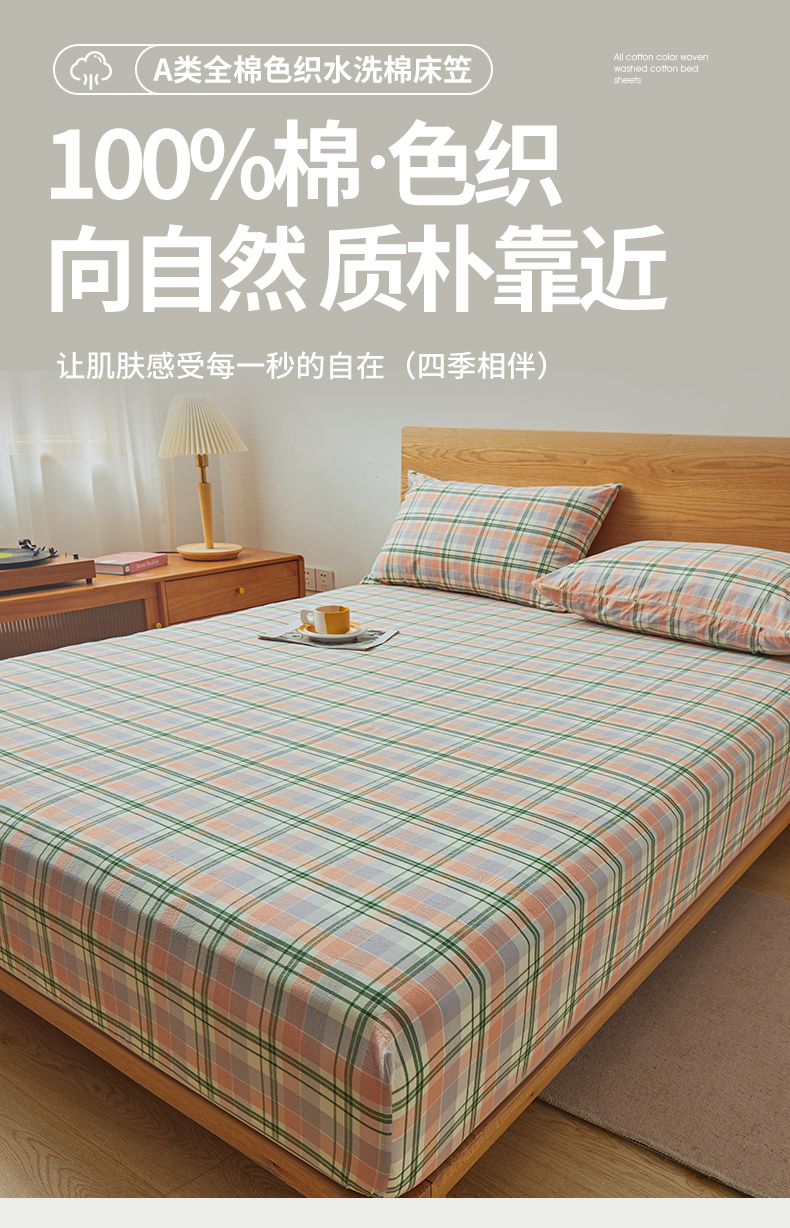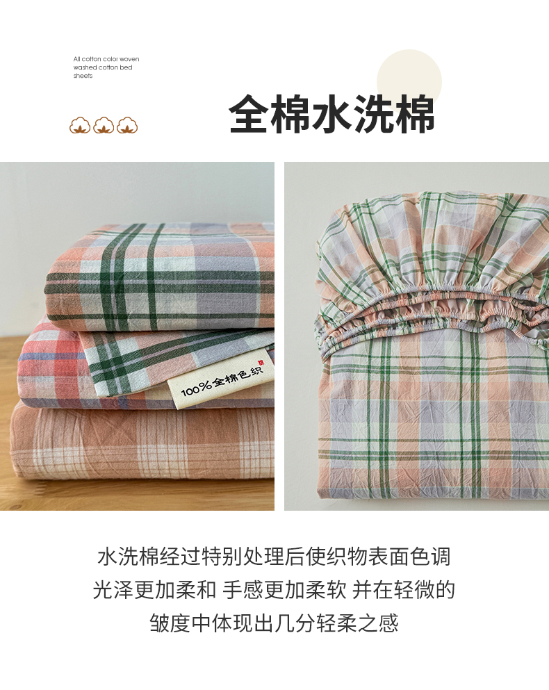 • 91家纺网 家纺一手货源 找家纺 居眠 2024新款全棉色织单纯水洗棉无印 床笠 映梦 粉