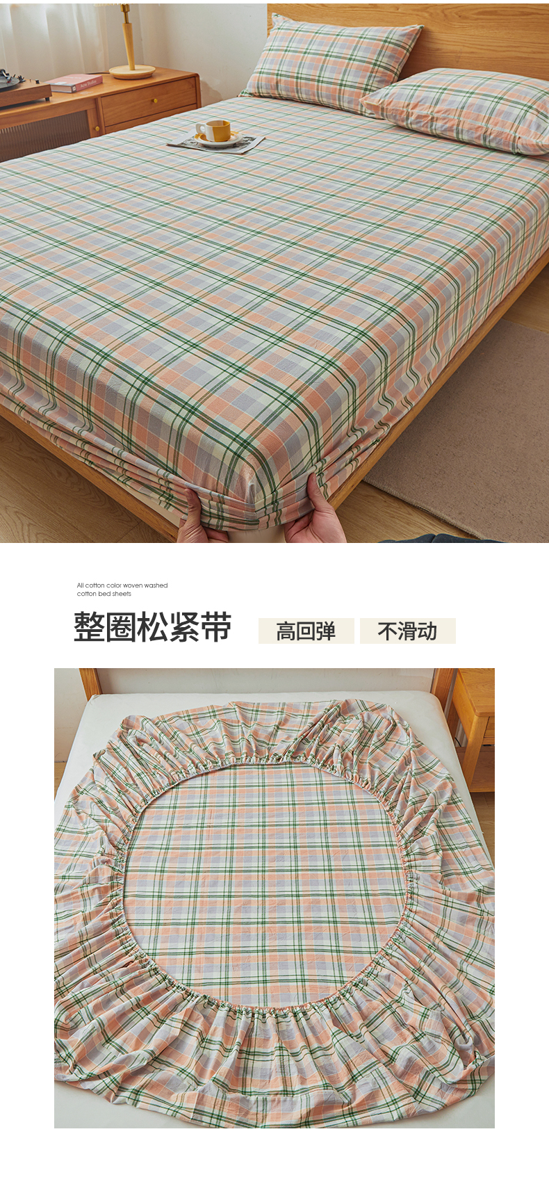 居眠 2024新款全棉色织单纯水洗棉无印 床笠 映梦 粉