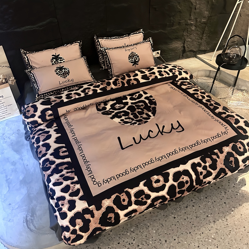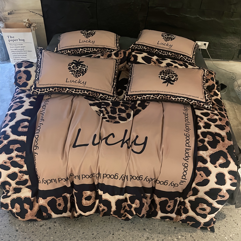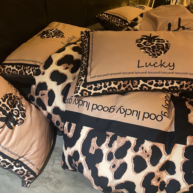 商品名称:丽斐纺织 2024新款双面磨毛数码印花四件套 磨毛豹纹小草莓
