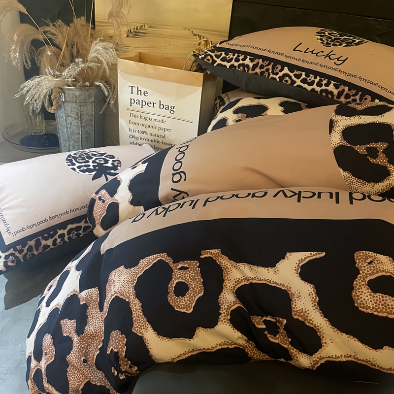 丽斐纺织 2024新款双面磨毛数码印花四件套 磨毛豹纹小草莓