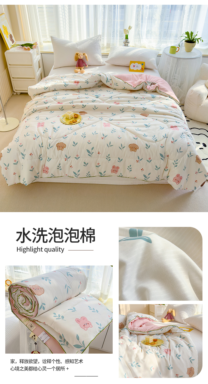 花言狐语 2025新款A类水洗泡泡棉大豆纤维夏凉被 可爱兔兔
