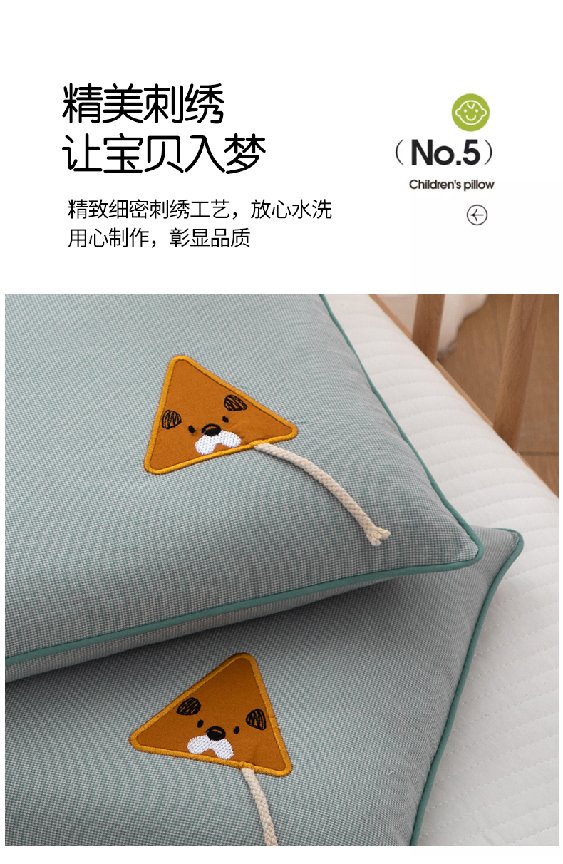 商品名称:(总)织布人 2024新款枕芯全棉水洗棉婴幼儿童枕0-6-12岁卡通贴布绣枕套+羽丝绒枕芯
