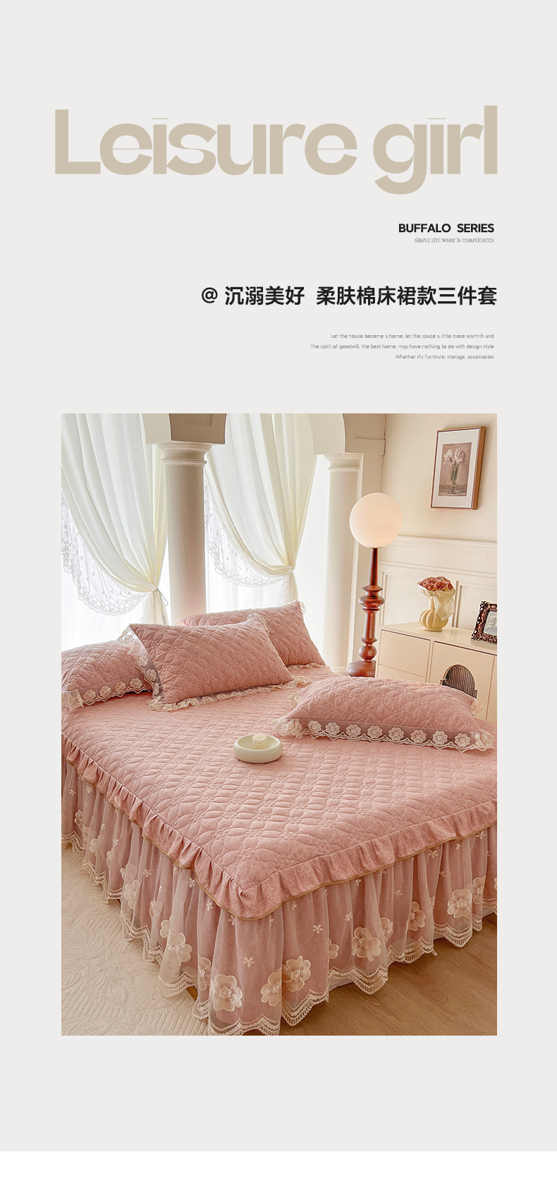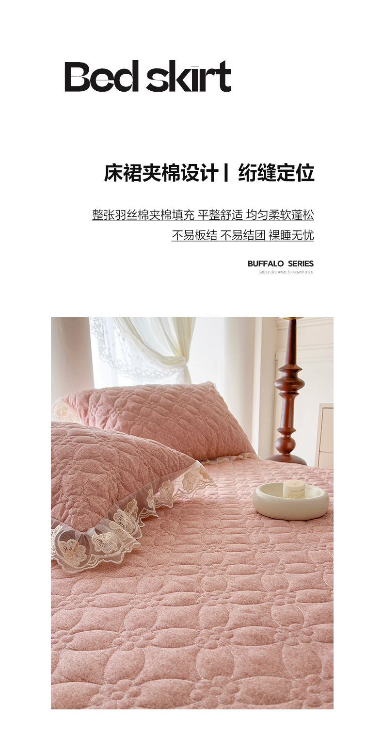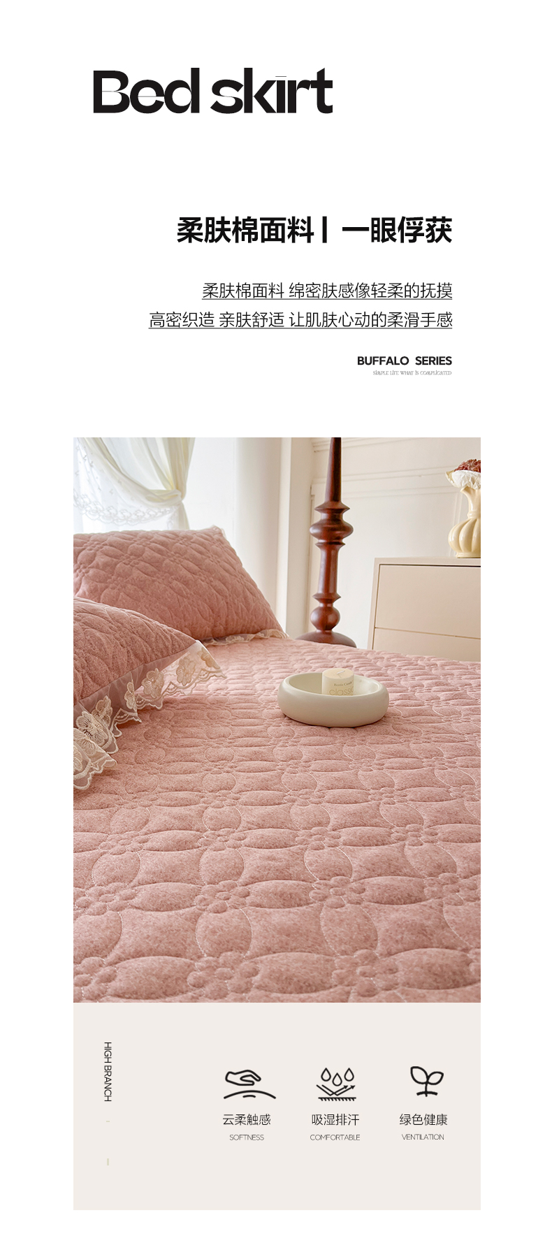 (总)网红馆(ck家纺) 2025新款高克重牛奶绒单床裙 床裙单件卡妮娜系列,卡妮娜-粉色,卡妮娜-灰色,卡妮娜-卡其,卡妮娜-绿色,卡妮娜-米色