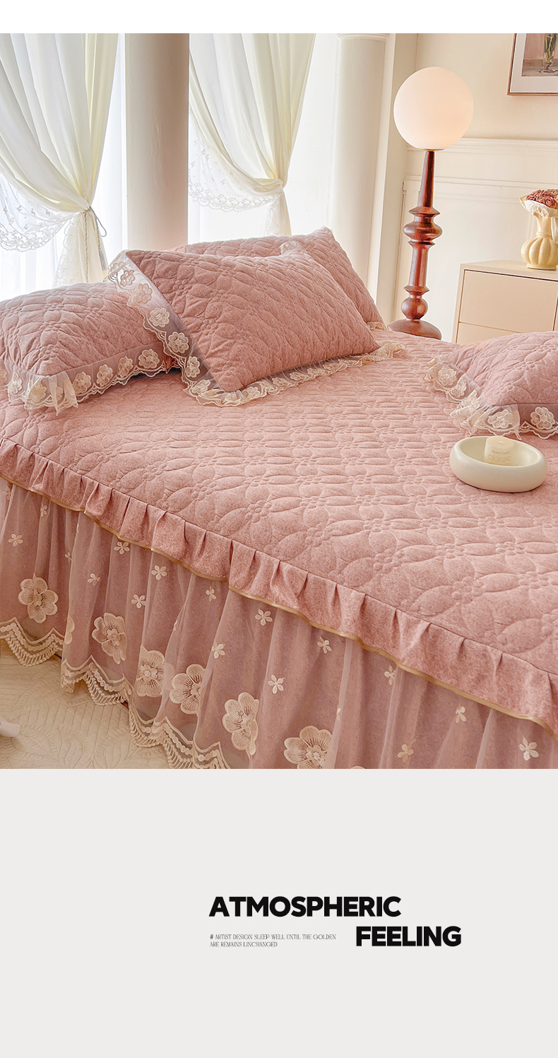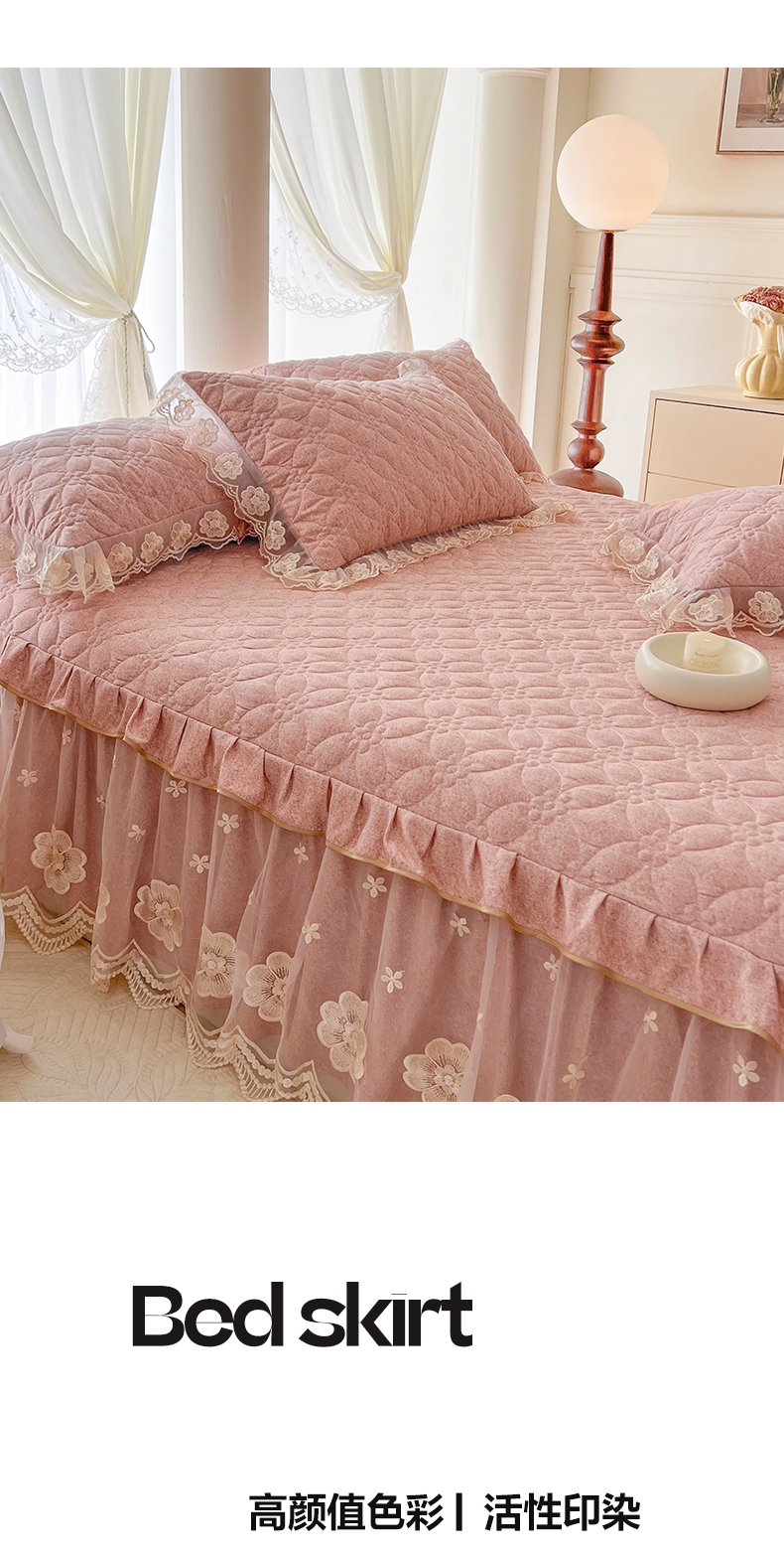 网红馆 2025新款柔肤棉四件套床裙花边款艾丽莎系列 海棠粉