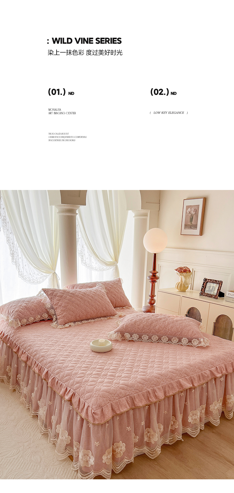 (总)网红馆(ck家纺) 2025新款牛奶绒花边床盖四件套-甜蜜蜜,甜蜜蜜-粉,甜蜜蜜-咖,甜蜜蜜-绿,甜蜜蜜-米,甜蜜蜜-紫