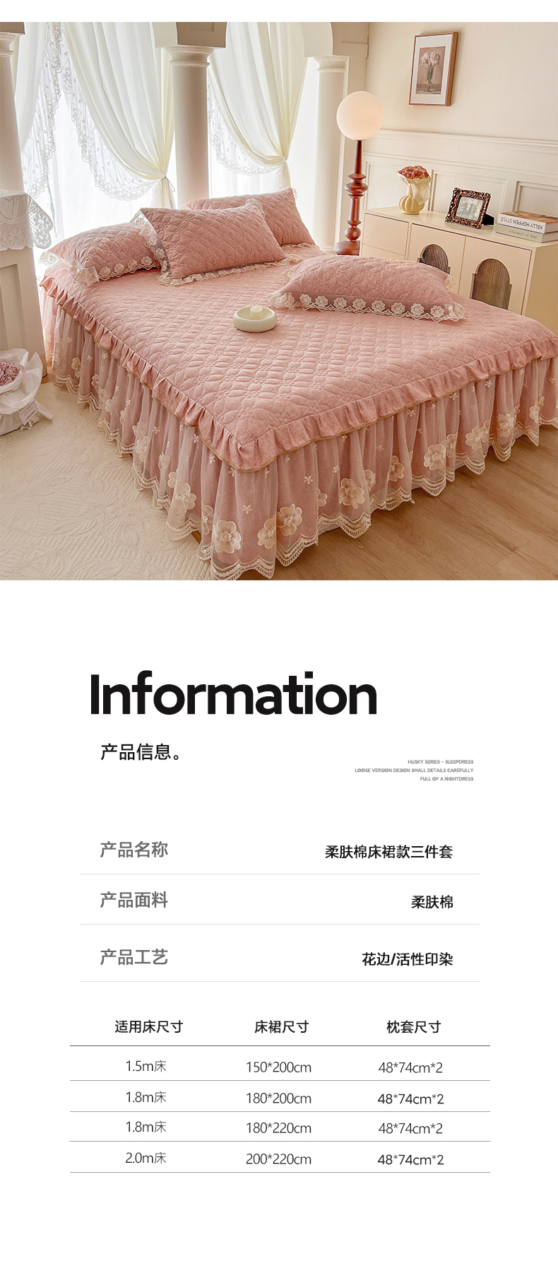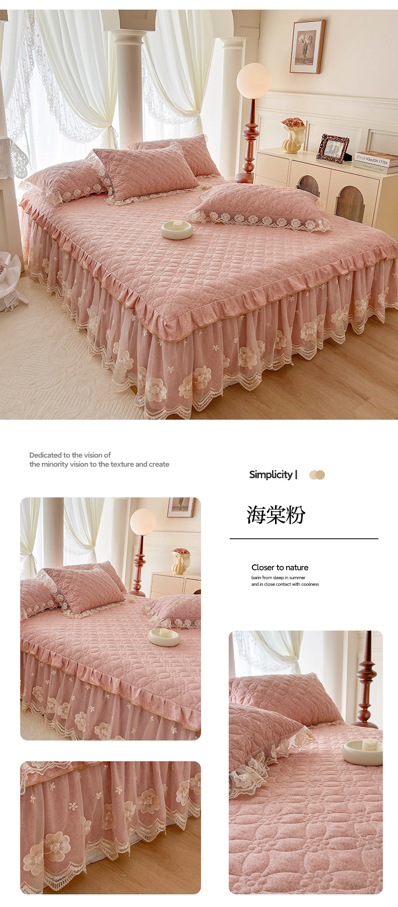 商品名称:网红馆 2025新款柔肤棉四件套床裙花边款艾丽莎系列 海棠粉