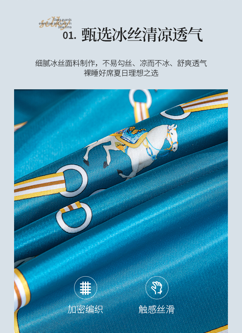 梵克保罗 2024新款印花冰丝凉席套件-系列一 马到成功
