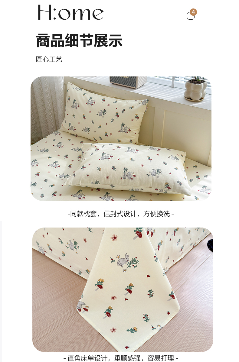 当前位置: 91家纺网 > 商品网购 > 床品套件 > 三件套 > 吉象家纺 2024新款老粗布三件套-床单款 花园兔