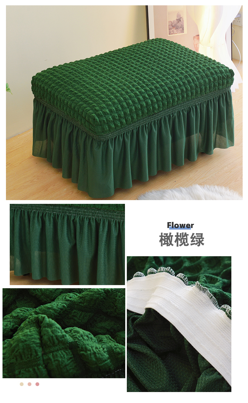 商品名称:启博家纺 2024新款简约舒适泡泡纱系列-裙边换鞋凳套(脚踏套沙发凳套) 橄榄绿