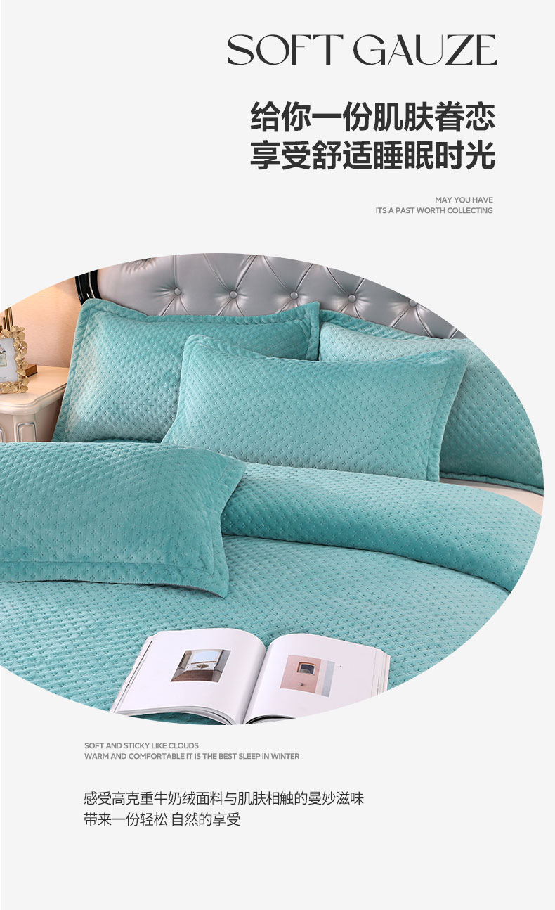 商品名称:芸锦豪 2024新款牛奶绒华夫格床盖 绿色