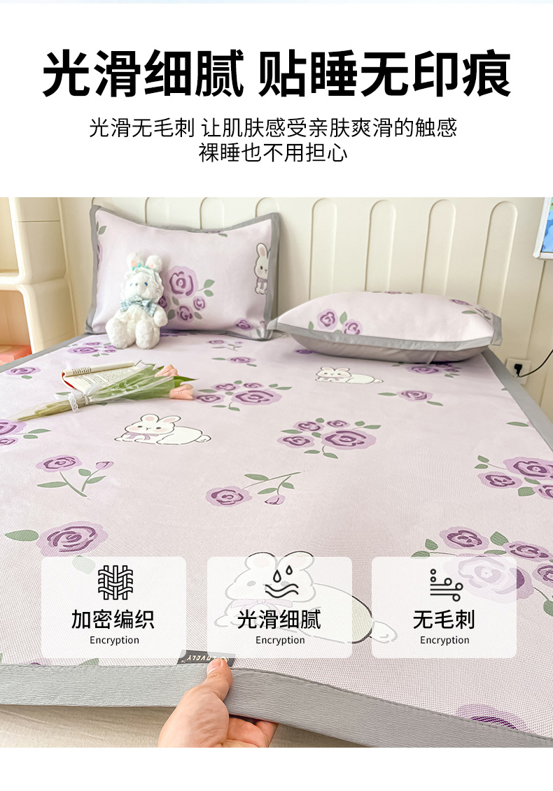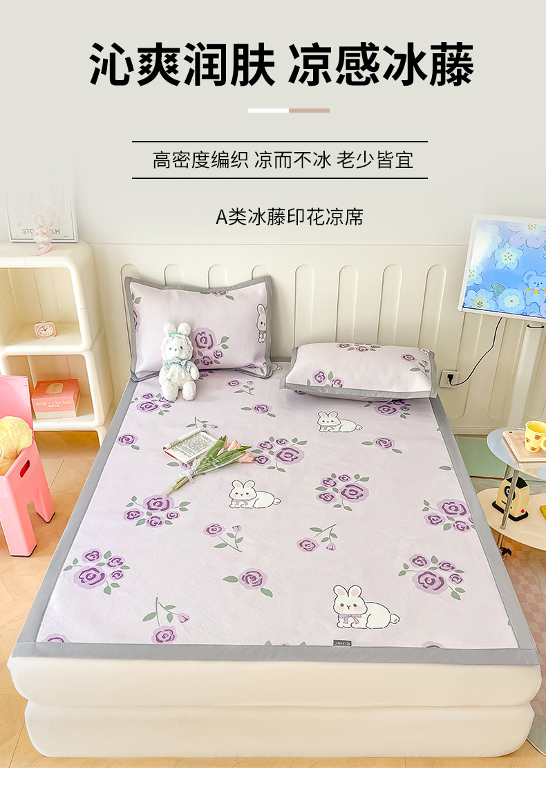 当前位置: 91家纺网 > 商品网购 > 床上用品 > 凉席 > 藤席 > 安哆啦家纺 2024新款A类冰藤印花凉席 紫花兔-床笠款