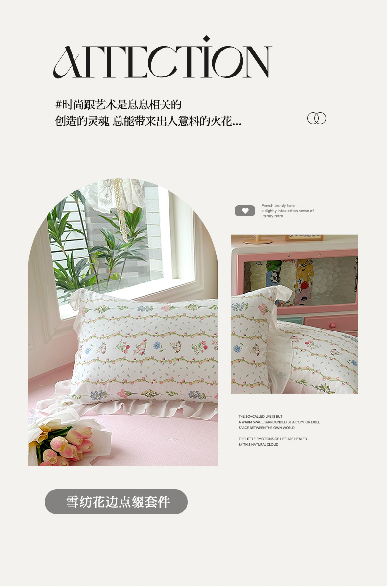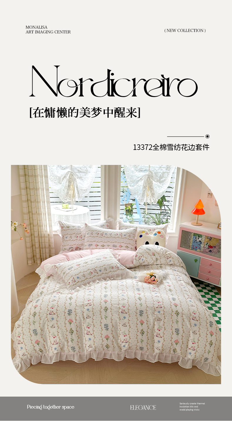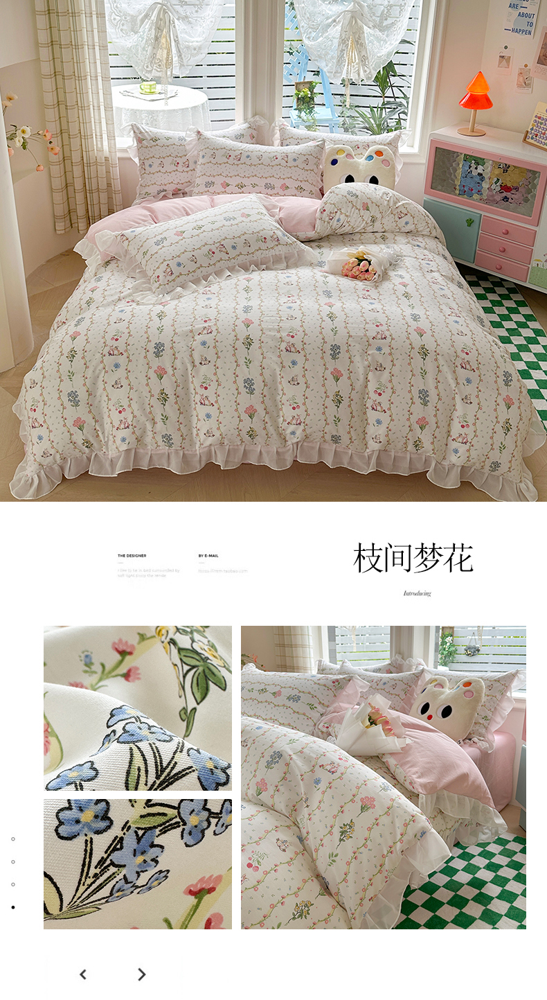 富瑞阁 2024年新款13372全棉雪纺花边花边款四件套 三件套 枝间梦花