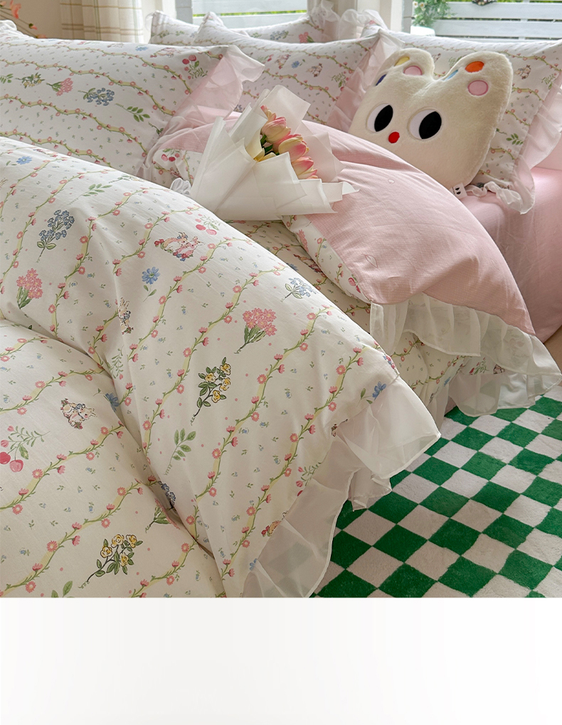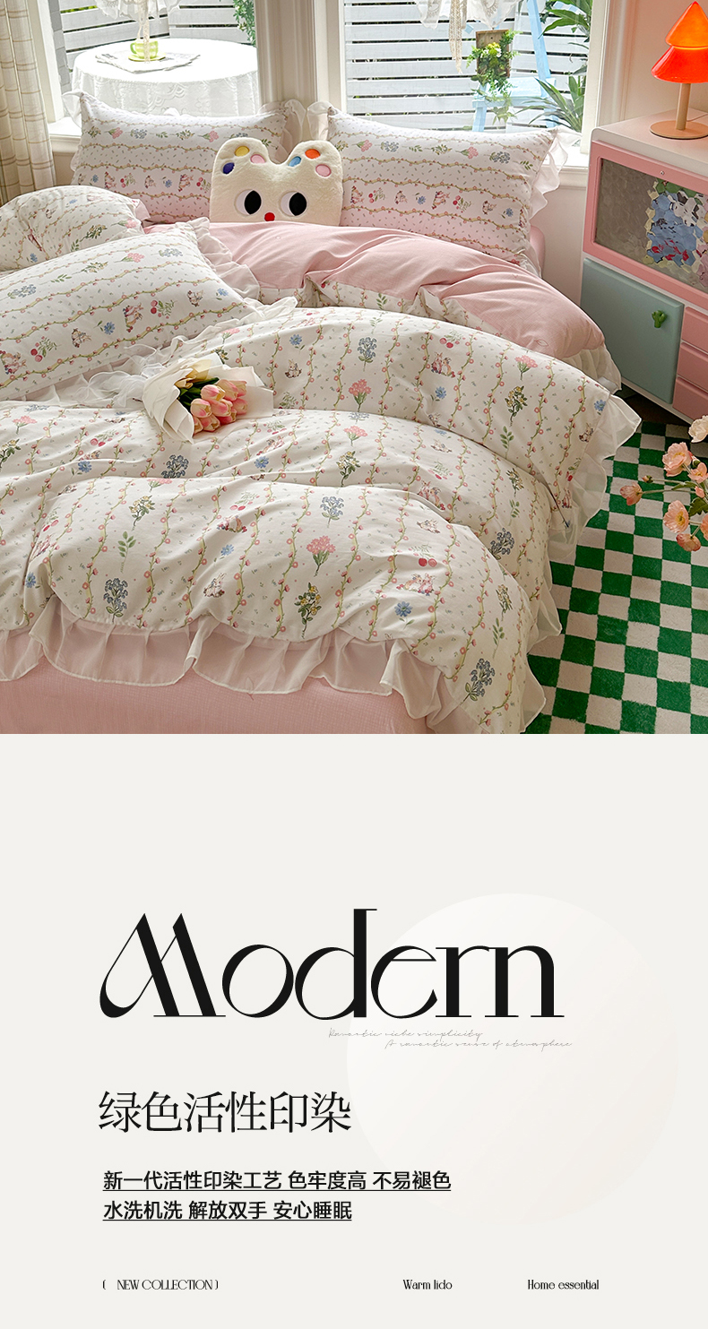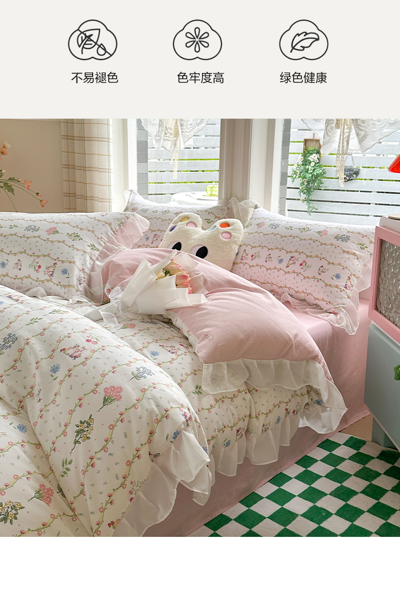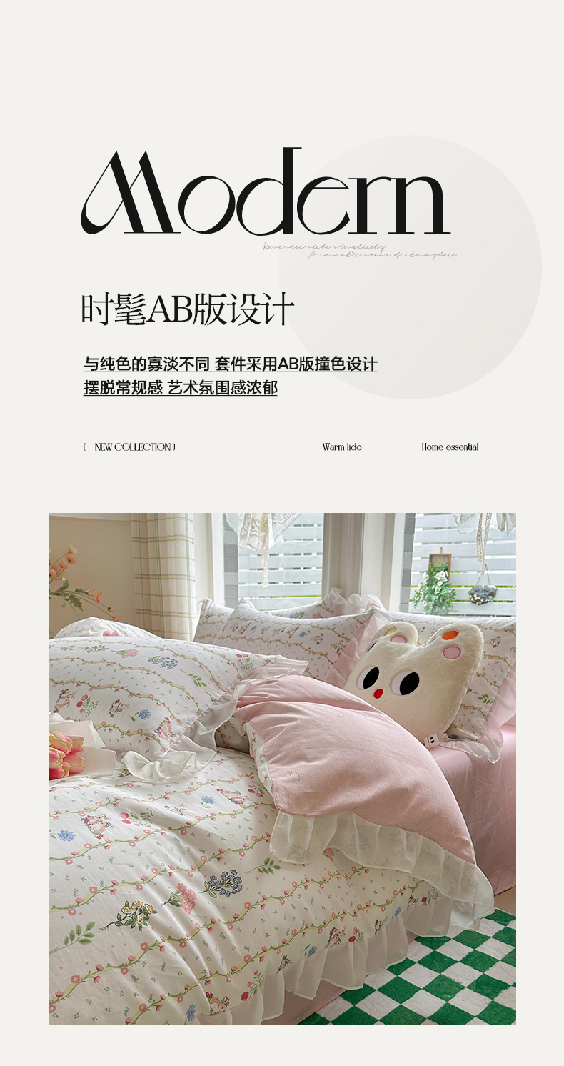 富瑞阁 2024年新款13372全棉雪纺花边花边款四件套 三件套 枝间梦花