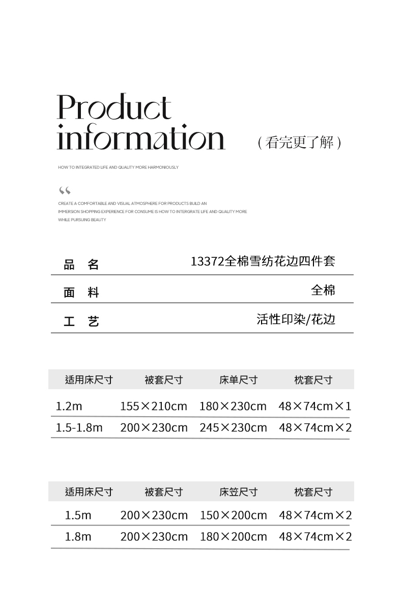 商品名称:富瑞阁 2024年新款13372全棉雪纺花边花边款四件套 三件套 枝间梦花