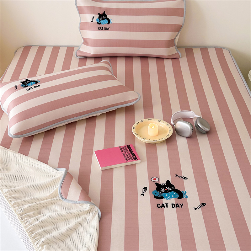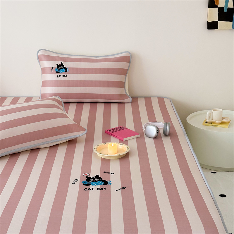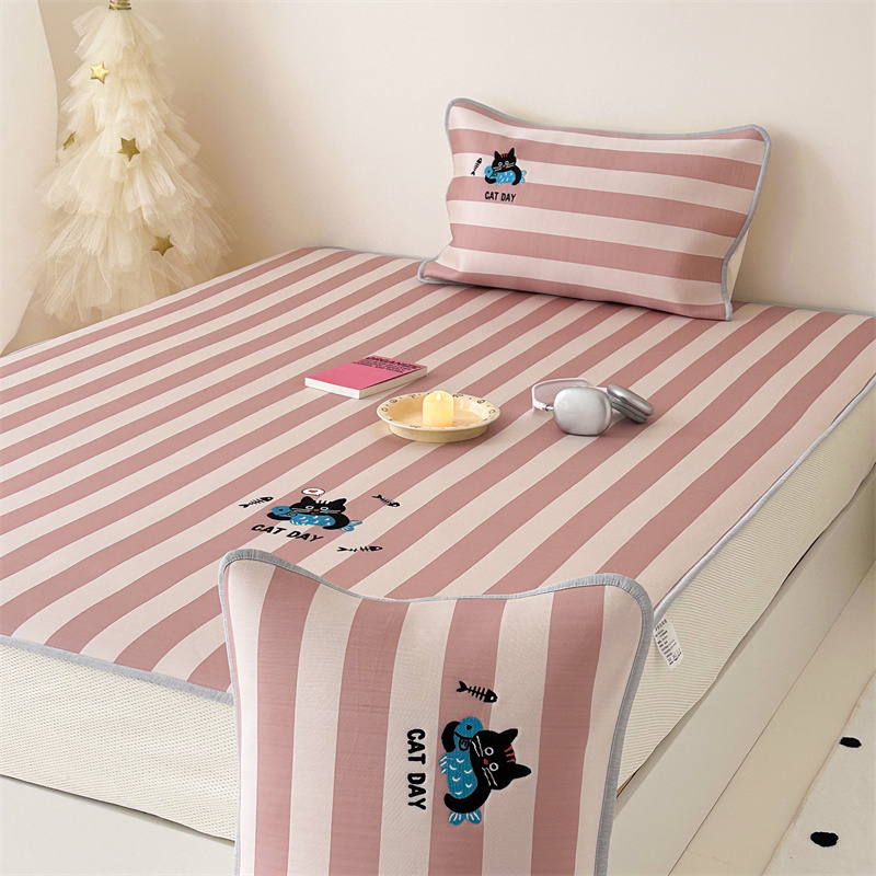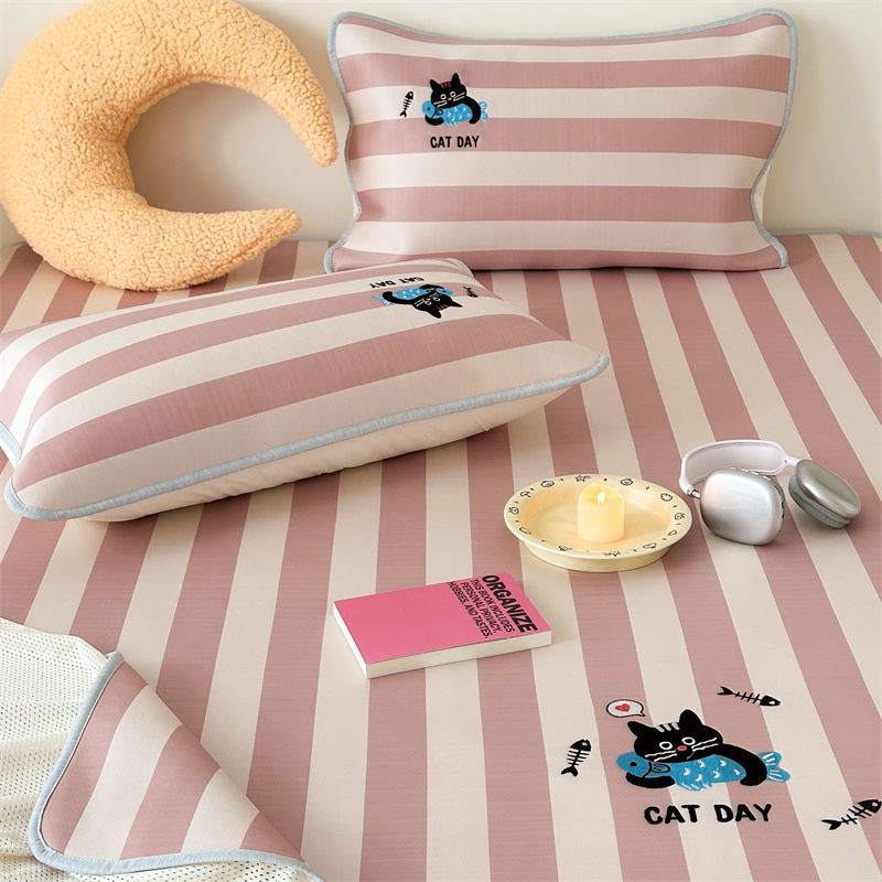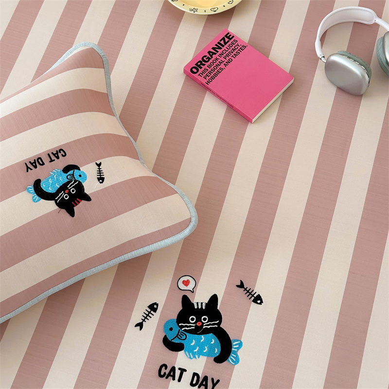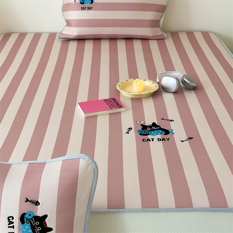 珺柔家纺 2024新款A类刺绣冰柔丝软凉席 小猫咪