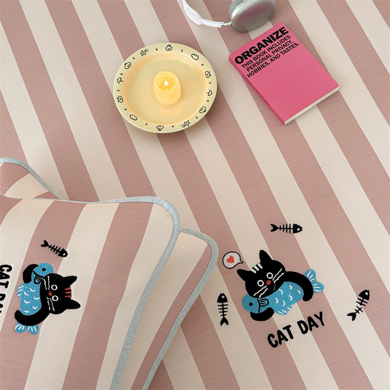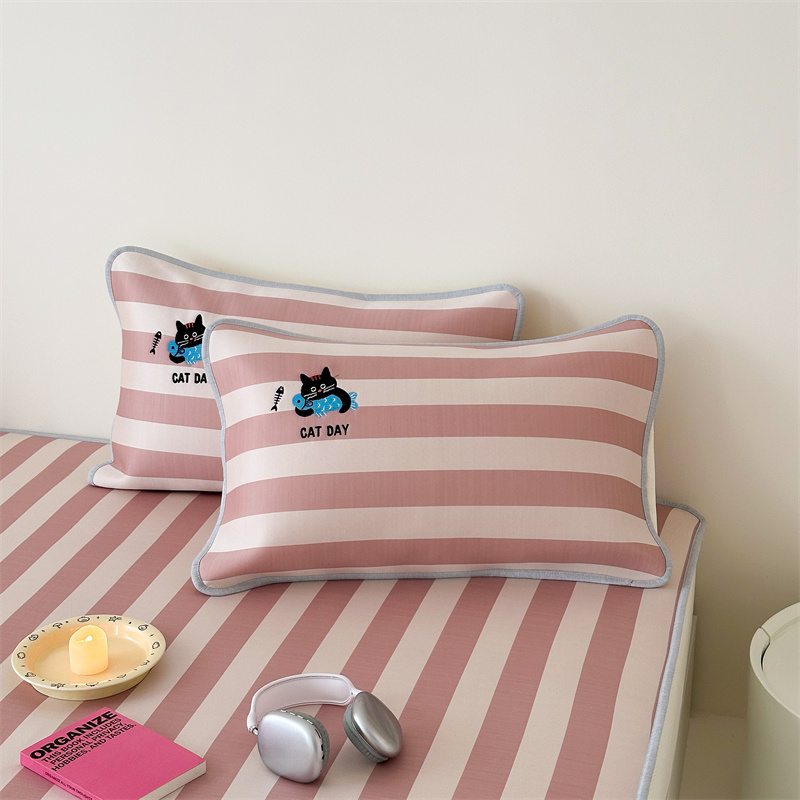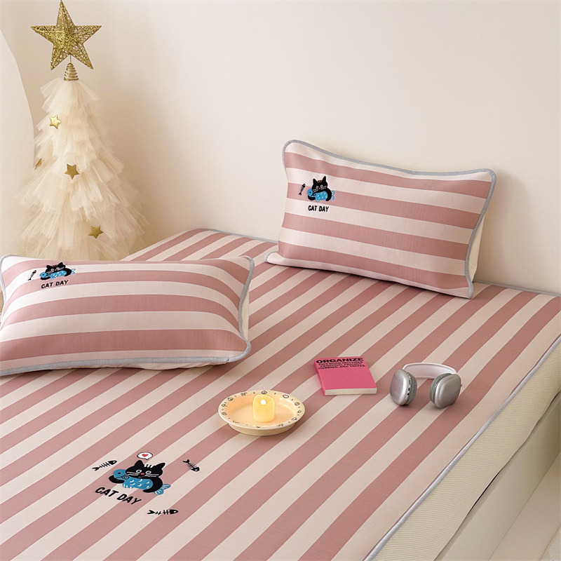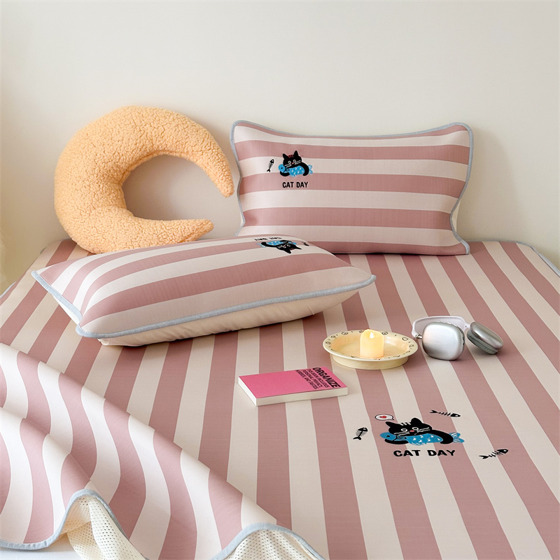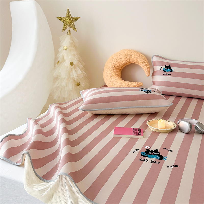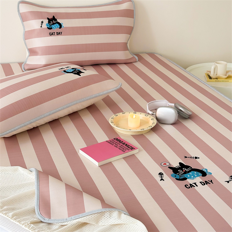 珺柔家纺 2024新款A类刺绣冰柔丝软凉席 小猫咪