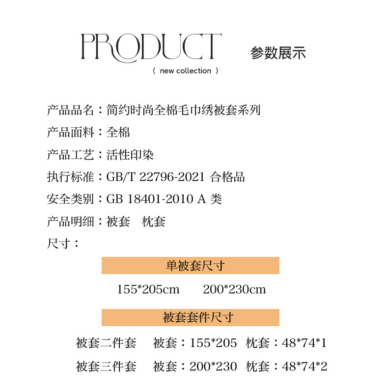 商品名称:(总)倾慕家纺 2024倾慕INS风毛巾绣纯棉系列 单被套